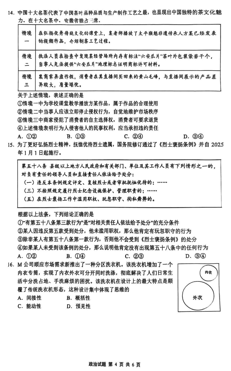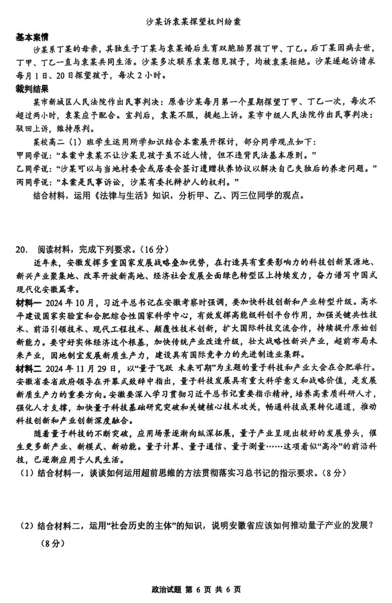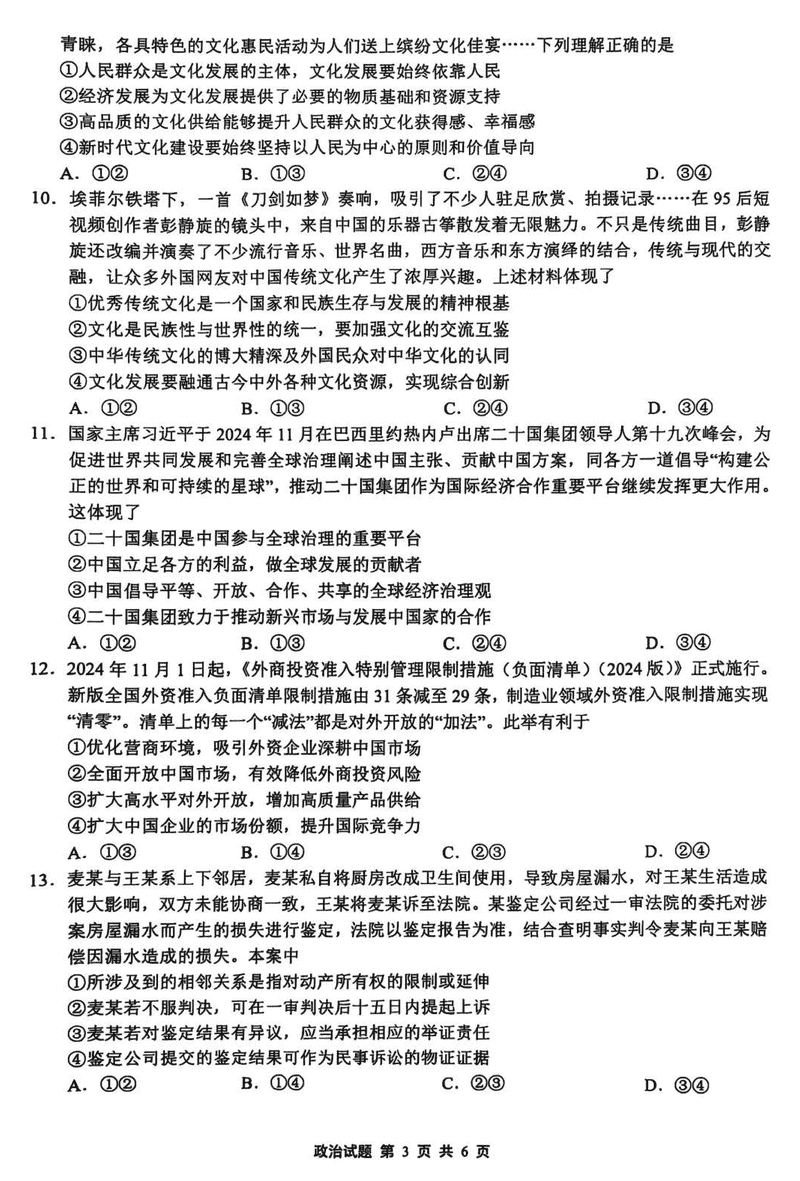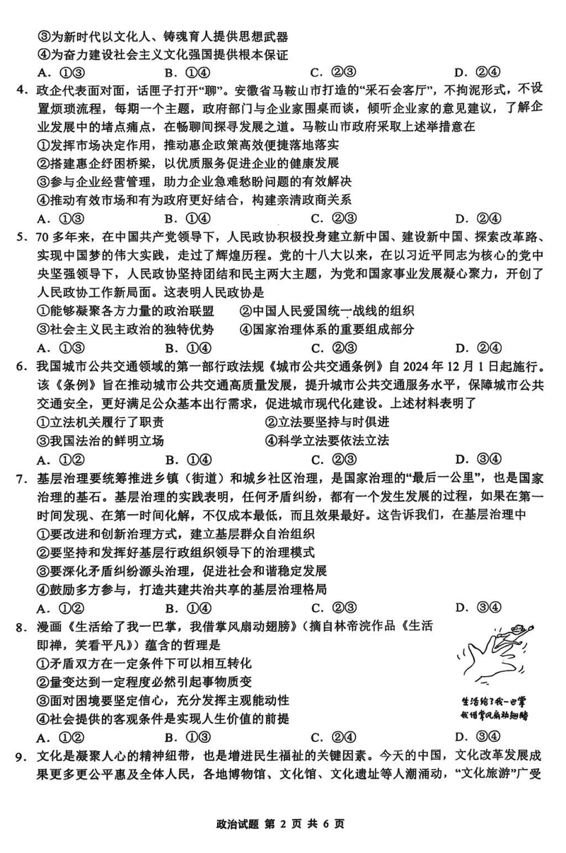 江南十校一模2025届高三下学期第一次联考政治试题及答案