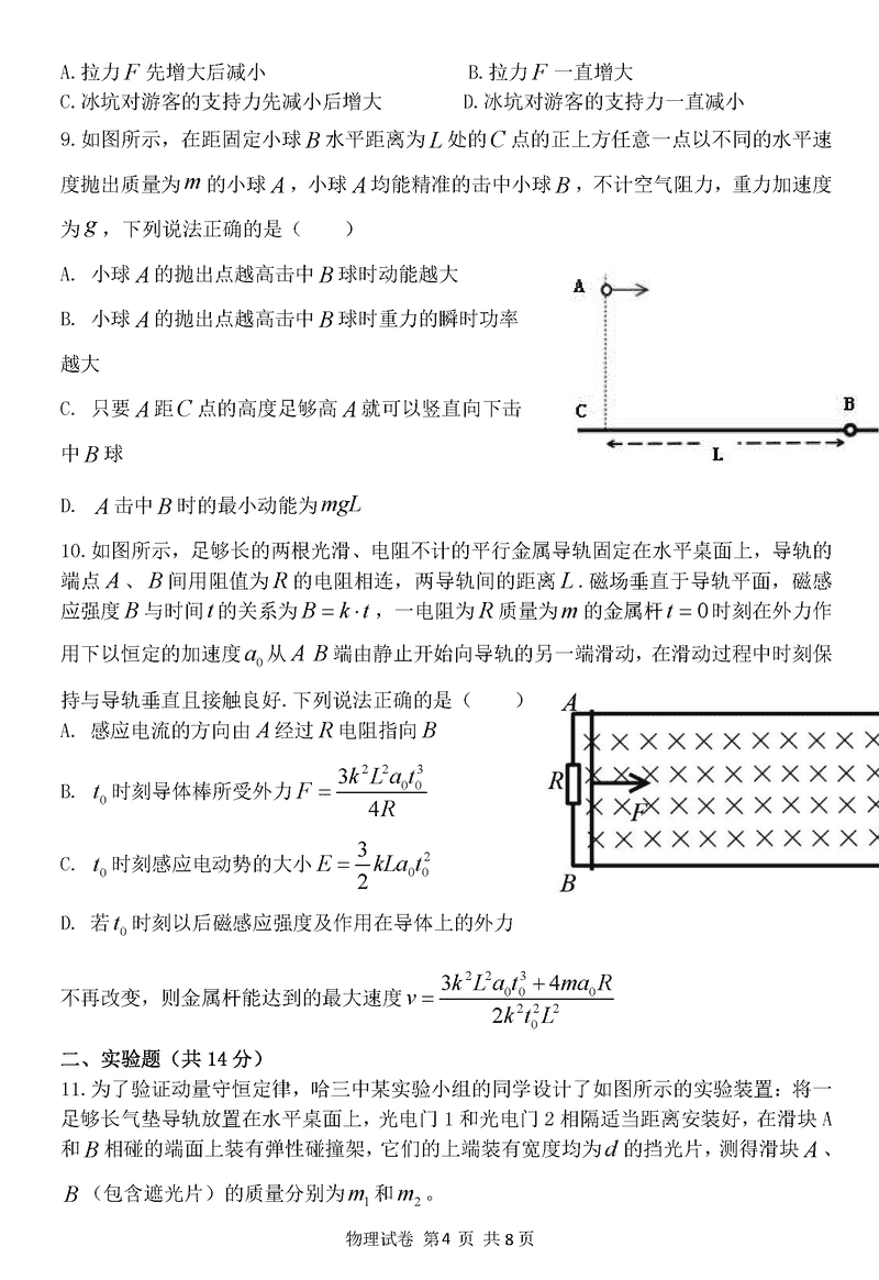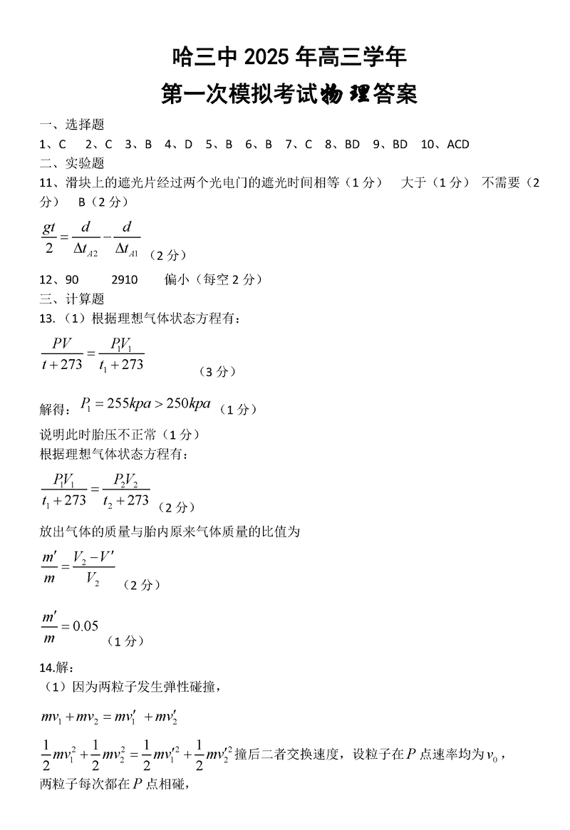 哈三中2025年高三学年第一次模考物理试题及答案 时间:2025-03-06 黑龙江 理综试题 哈三中2025年高三学年第一次模考物理考试已于近日开考,为方便考生考后及时查看考试情况,查漏补缺、弥补不足,本文整理了试题答案解析相关信息! 汇总:哈三中2025年高三学年第一次模拟考试试题及答案汇总 物理试题及答案解析