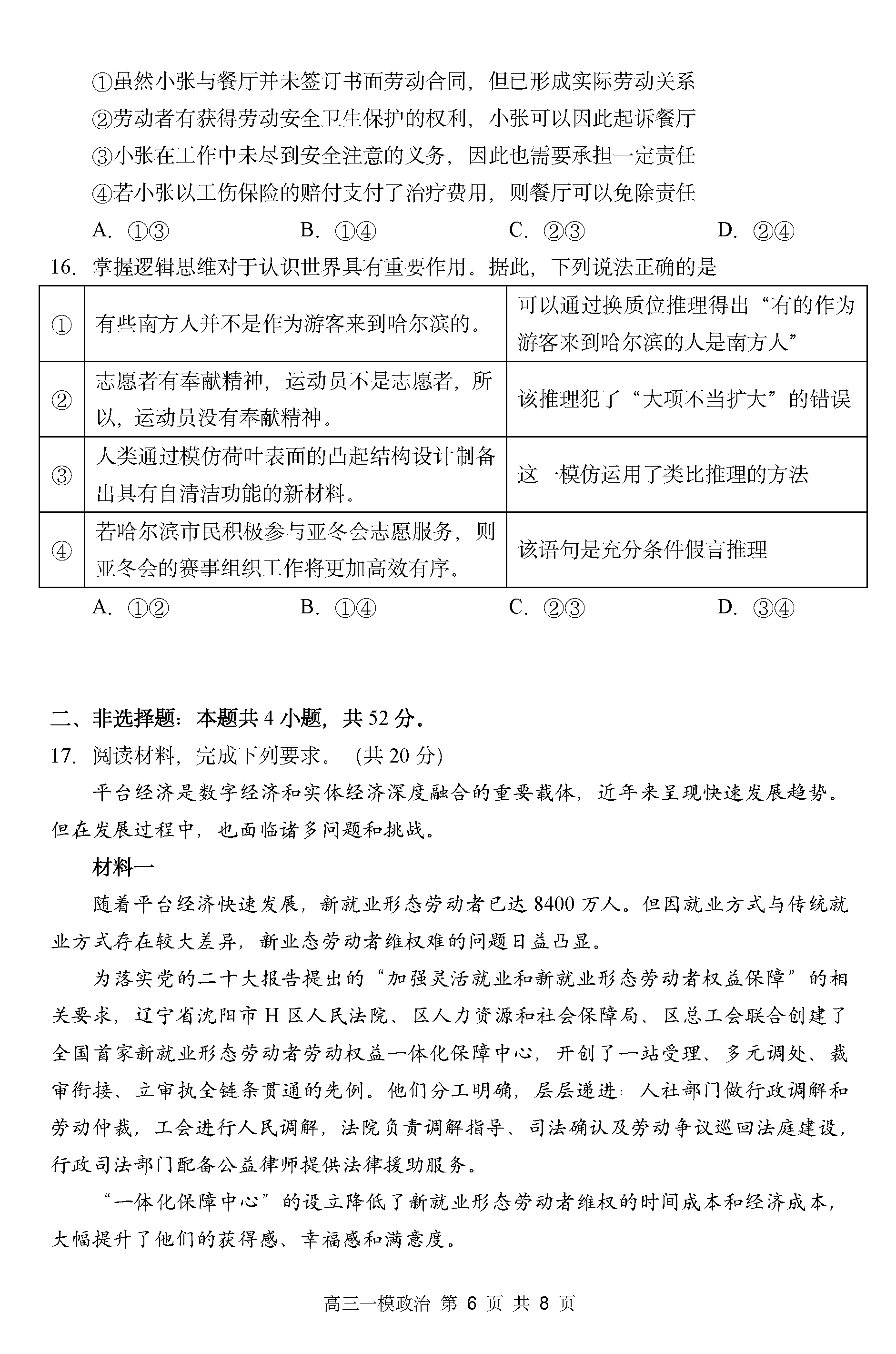 哈三中2025年高三学年第一次模考政治试题及答案 时间:2025-03-06 黑龙江 文综试题 哈三中2025年高三学年第一次模考政治考试已于近日开考,为方便考生考后及时查看考试情况,查漏补缺、弥补不足,本文整理了试题答案解析相关信息! 汇总:哈三中2025年高三学年第一次模拟考试试题及答案汇总 政治试题及答案解析