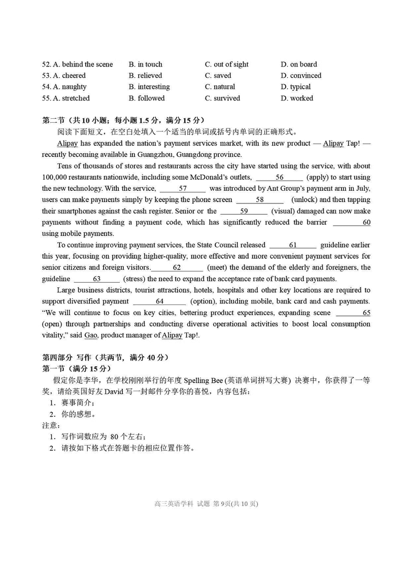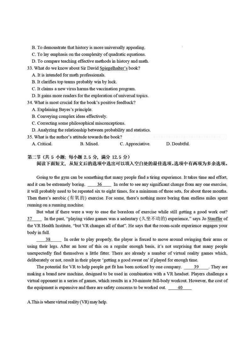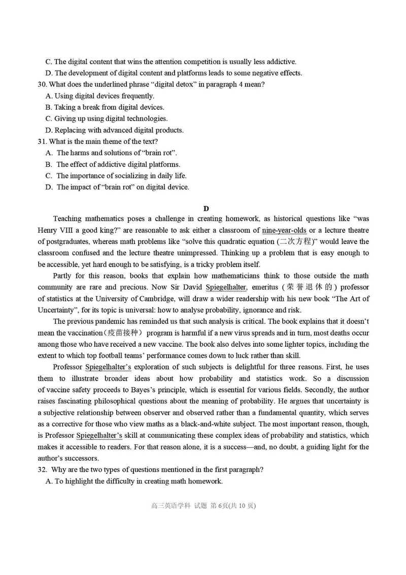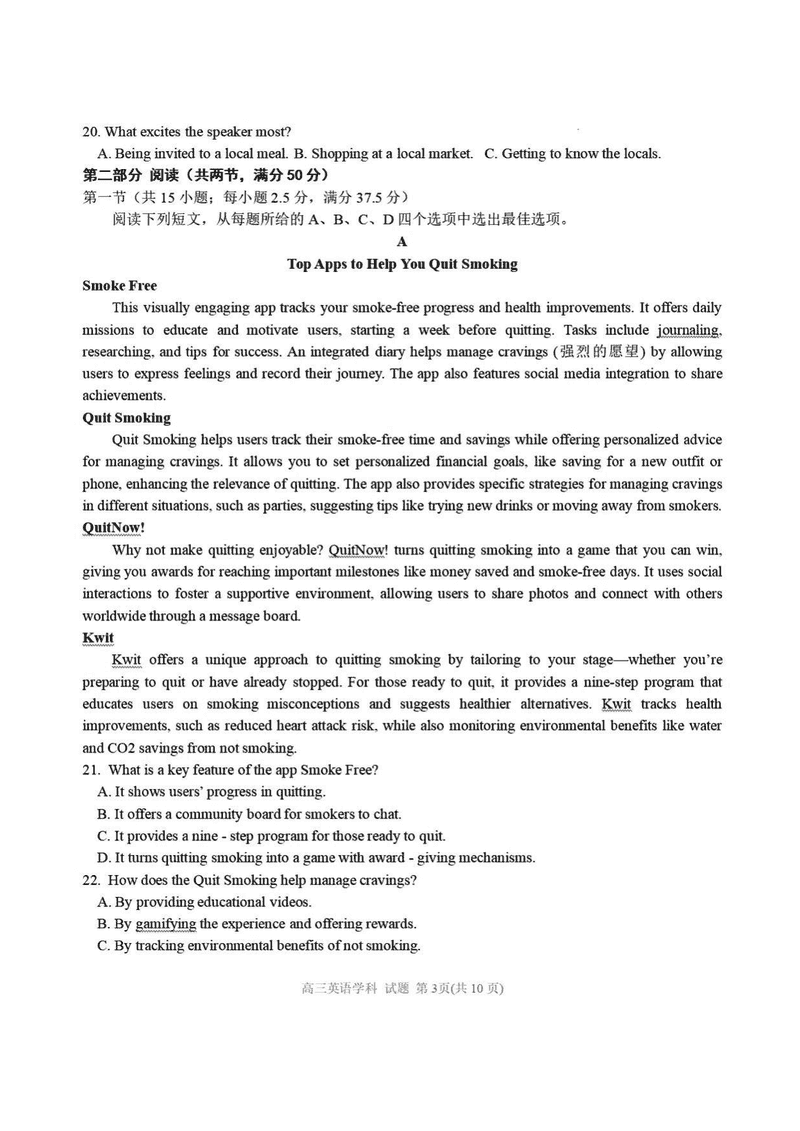 浙江天域全国名校协作体2024-2025学年高三下学期3月月考英语试题及答案