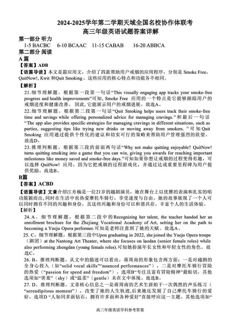 浙江天域全国名校协作体2024-2025学年高三下学期3月月考英语考试已于近日开考,为方便考生考后及时查看考试情况,查漏补缺、弥补不足,本文整理了试题答案解析相关信息!