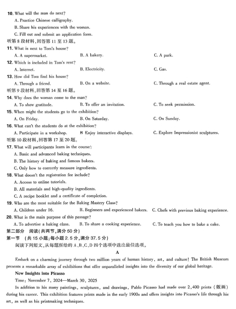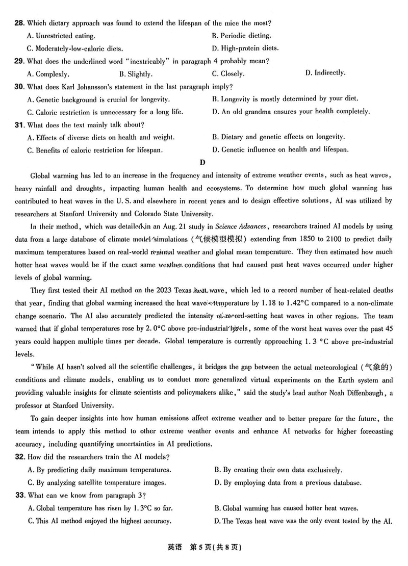 东北三省精准教学联考2025届高三3月联考英语试题及答案