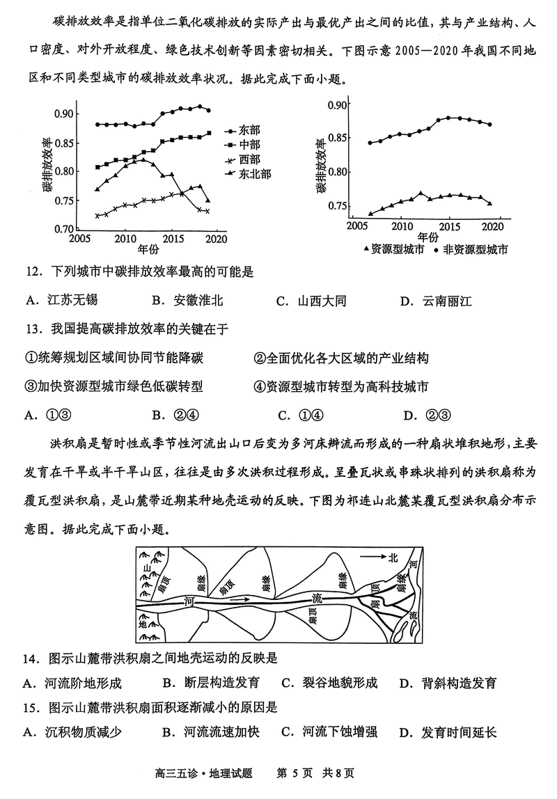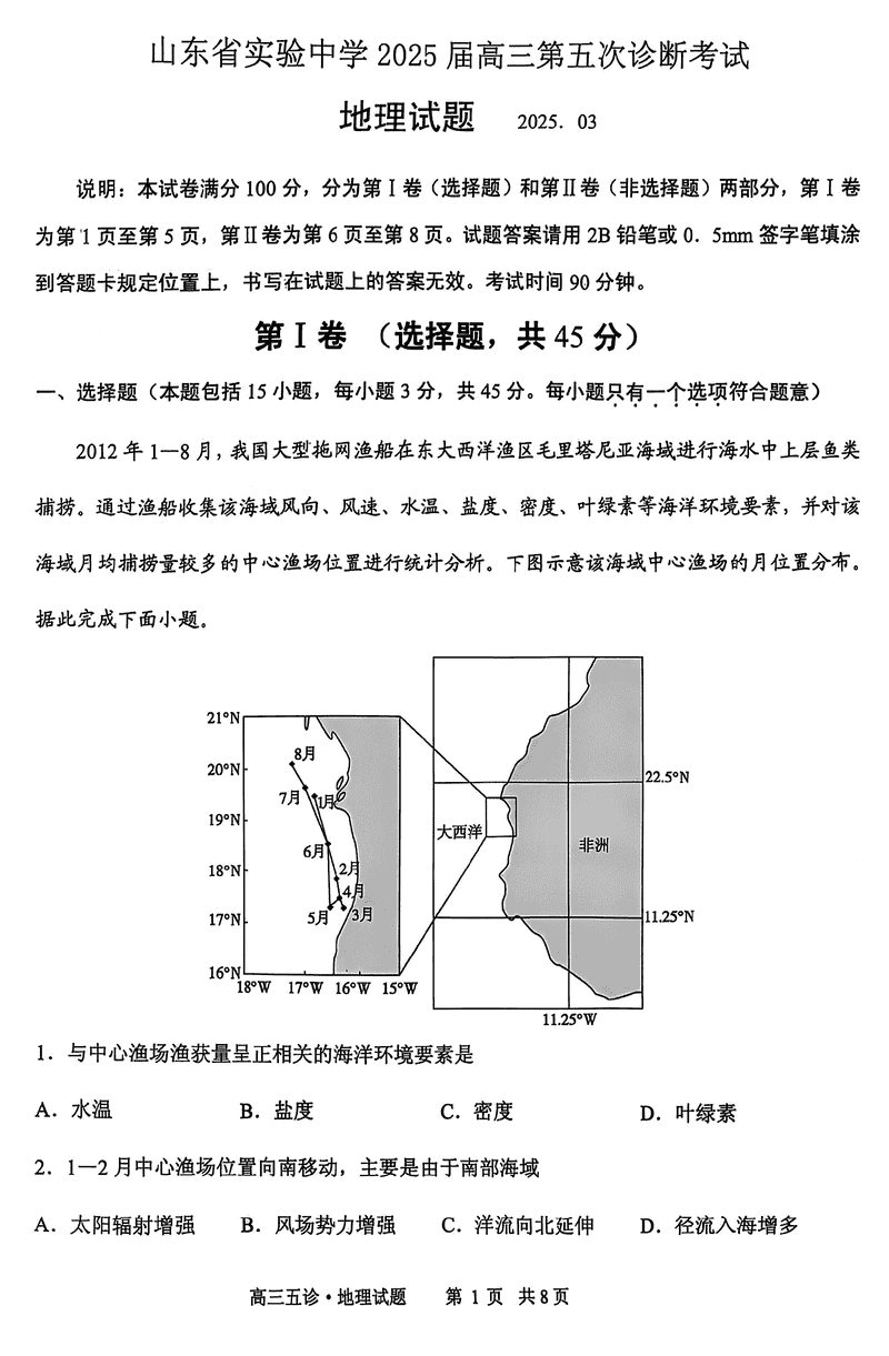 山东省实验中学2025届高三五诊地理试题及答案