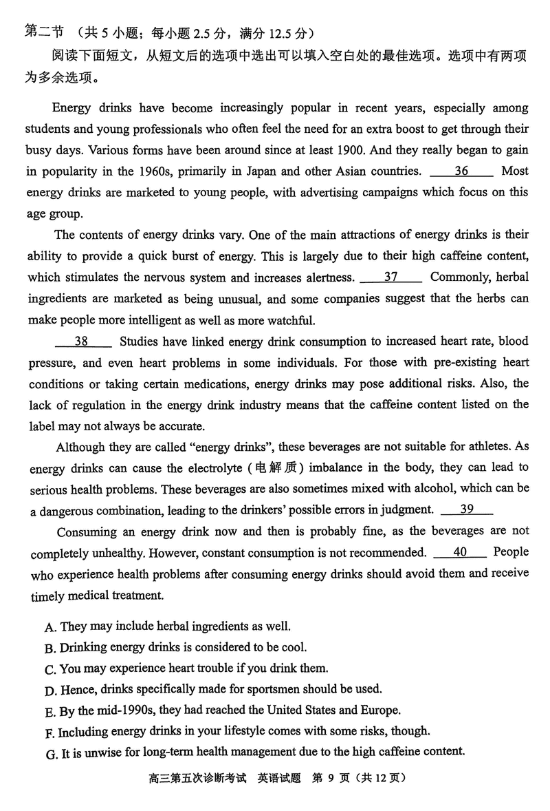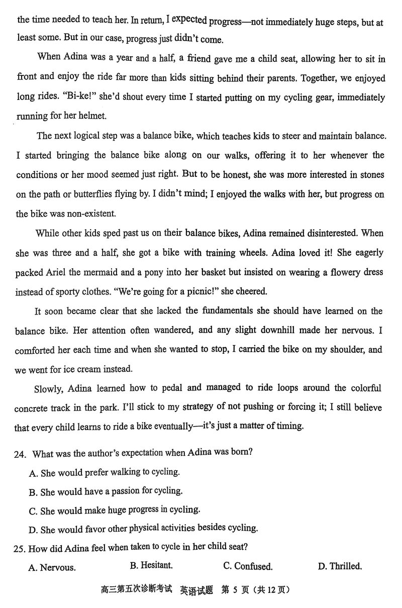 山东省实验中学2025届高三五诊英语试题及答案