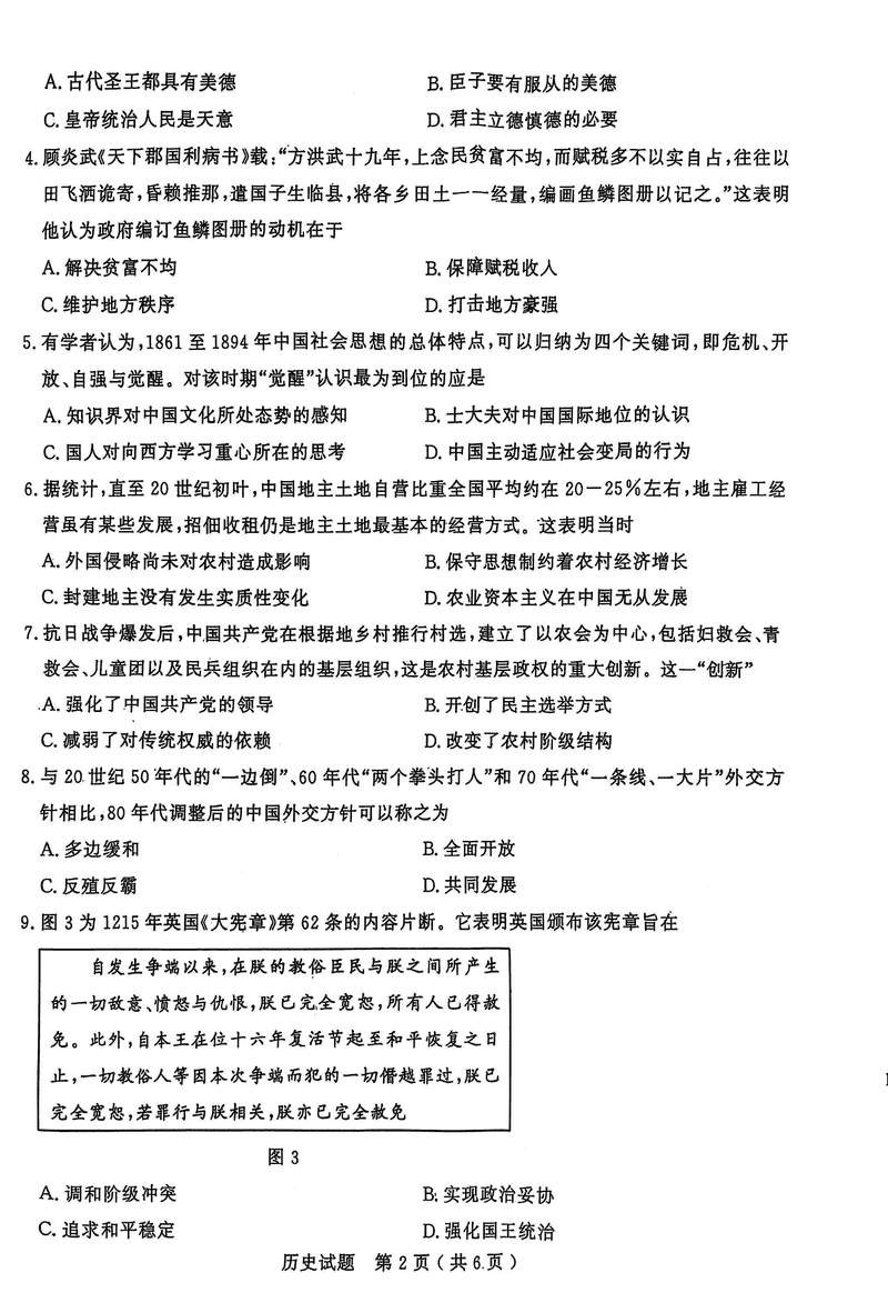 济宁一模2025年高考模拟历史试题及答案 时间:2025-03-07 山东 文综试题 济宁一模2025年高考模拟历史考试已于近日开考,为方便考生考后及时查看考试情况,查漏补缺、弥补不足,本文整理了试题答案解析相关信息! 汇总:济宁一模2025年高考模拟考试试题及答案汇总 历史试题及答案解析
