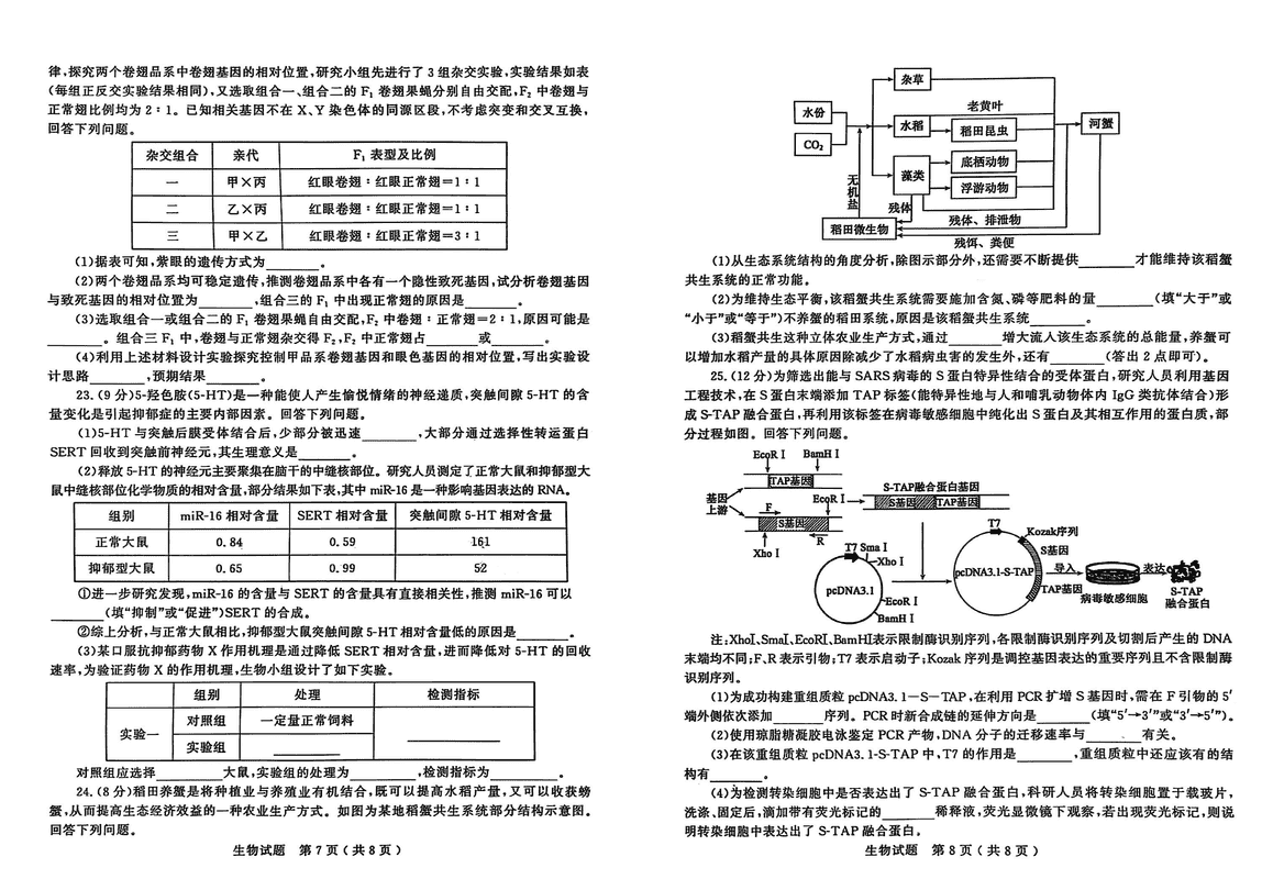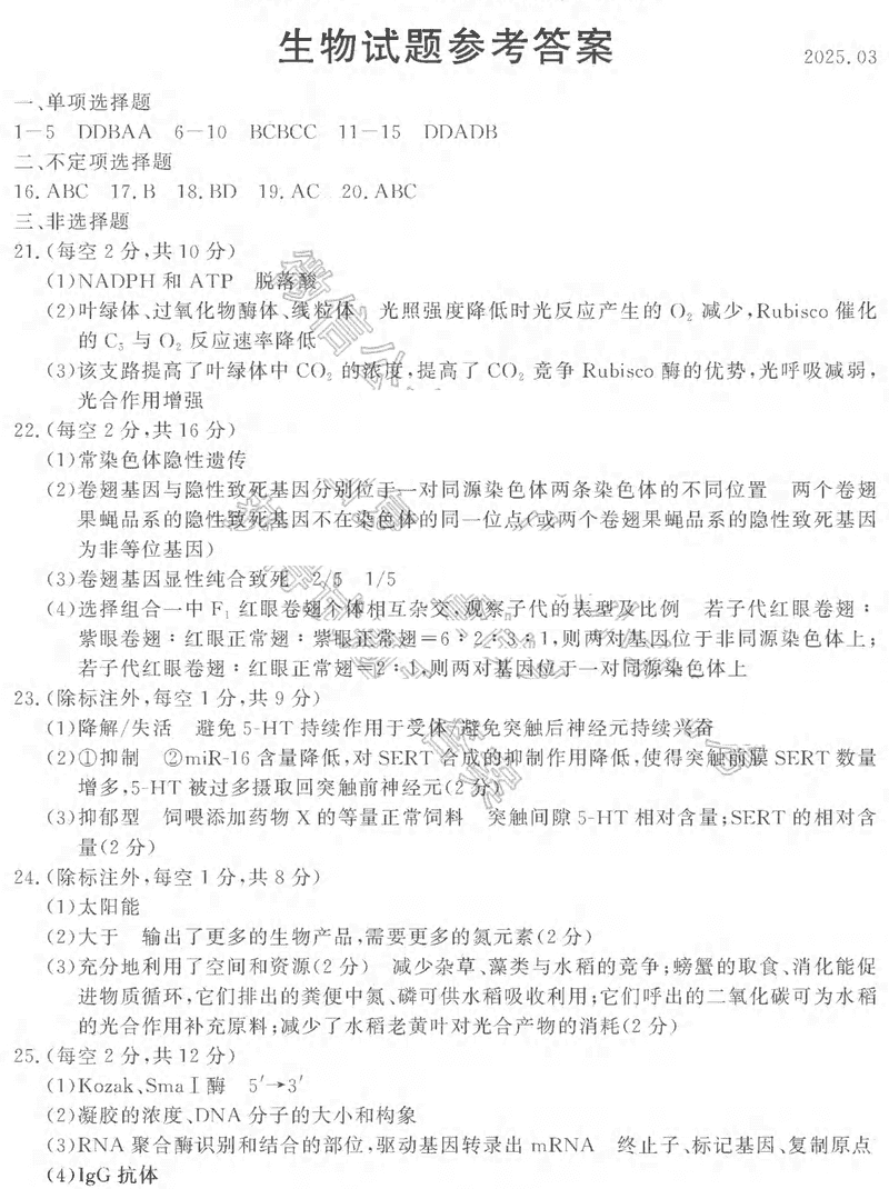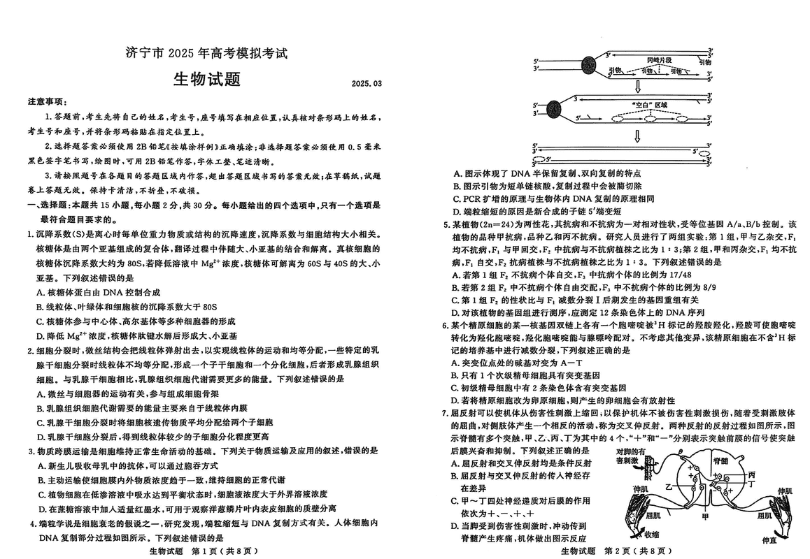 济宁一模2025年高考模拟生物试题及答案 时间:2025-03-07 山东 理综试题 济宁一模2025年高考模拟生物考试已于近日开考,为方便考生考后及时查看考试情况,查漏补缺、弥补不足,本文整理了试题答案解析相关信息! 汇总:济宁一模2025年高考模拟考试试题及答案汇总 生物试题及答案解析