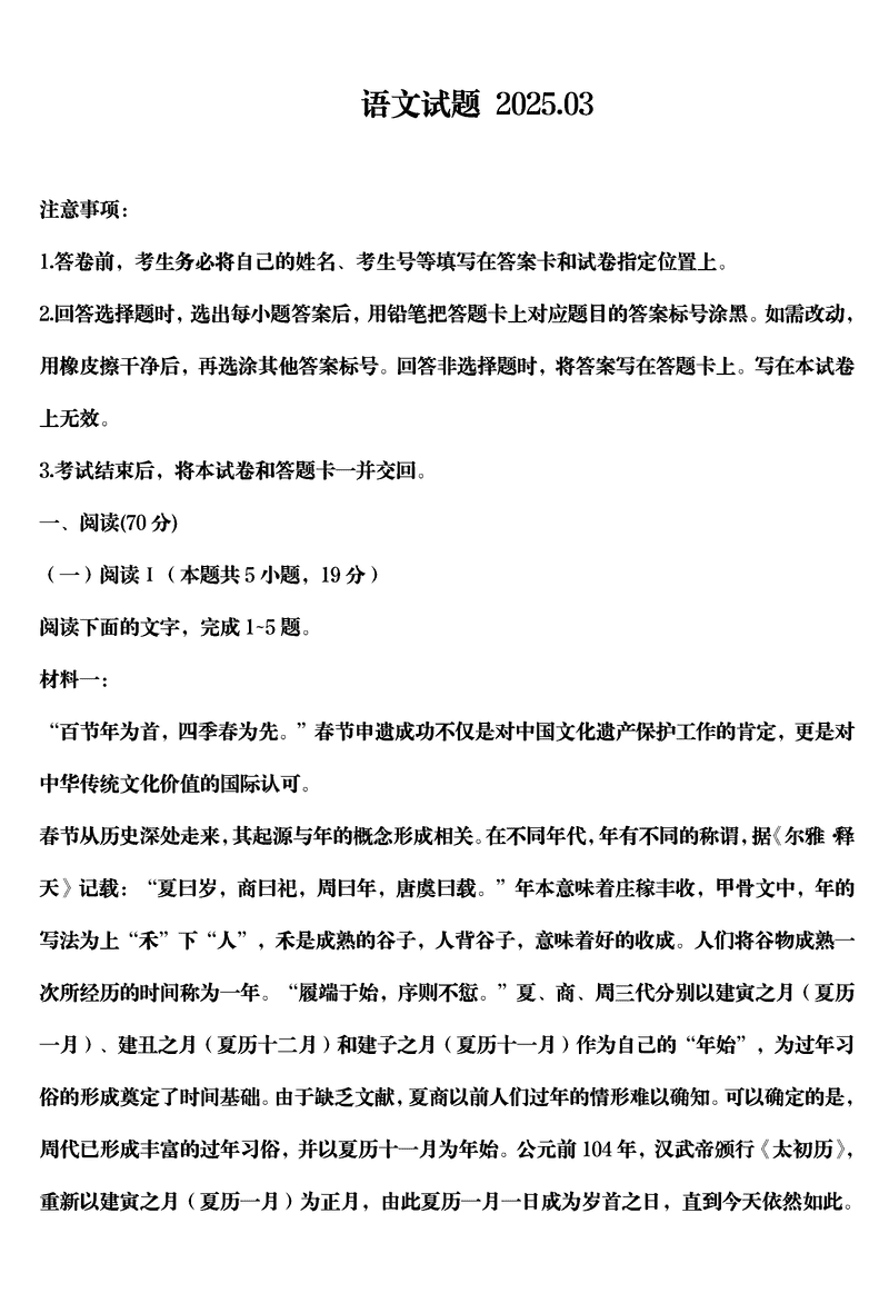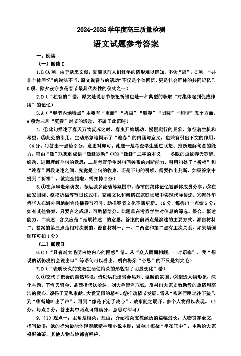 济宁一模2025年高考模拟语文试题及答案 时间:2025-03-07 山东 语文试题 济宁一模2025年高考模拟语文考试已于近日开考,为方便考生考后及时查看考试情况,查漏补缺、弥补不足,本文整理了试题答案解析相关信息! 汇总:济宁一模2025年高考模拟考试试题及答案汇总 语文试题及答案解析