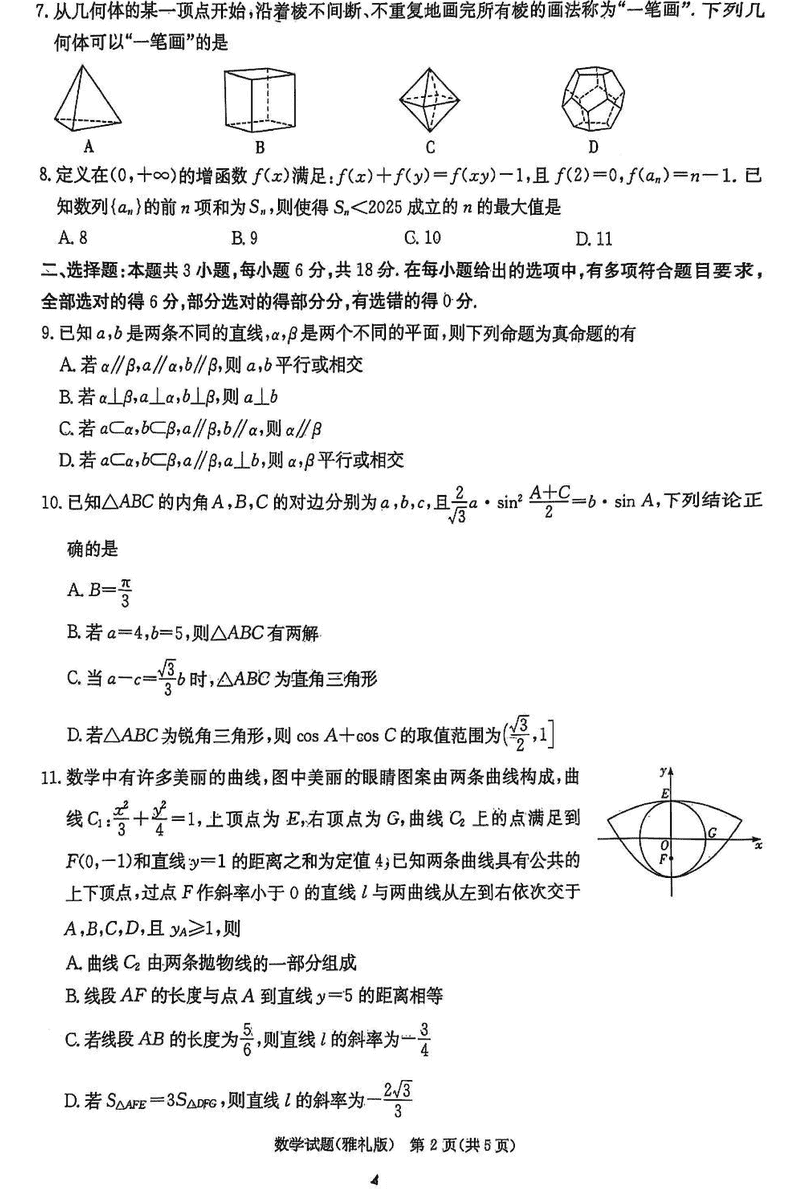 湖南雅礼中学2025届高三下学期月考卷(七)数学考试已于近日开考,为方便考生考后及时查看考试情况,查漏补缺、弥补不足,本文整理了试题答案解析相关信息!