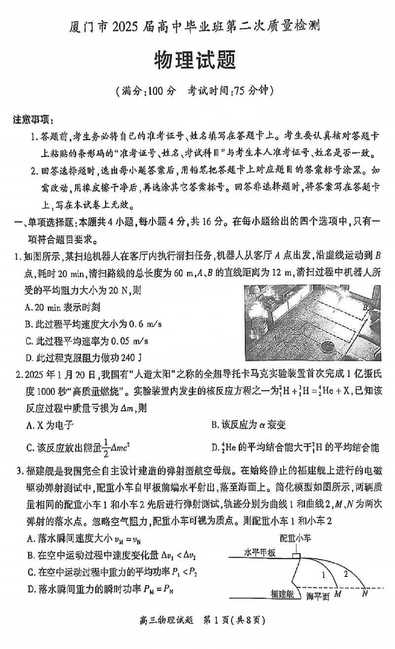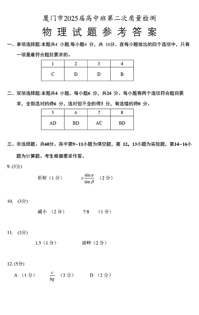 福建厦门2025届高三第二次质检物理考试已于近日开考,为方便考生考后及时查看考试情况,查漏补缺、弥补不足,本文整理了试题答案解析相关信息!