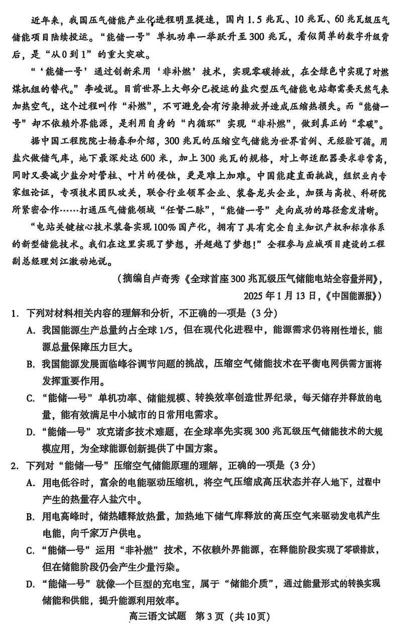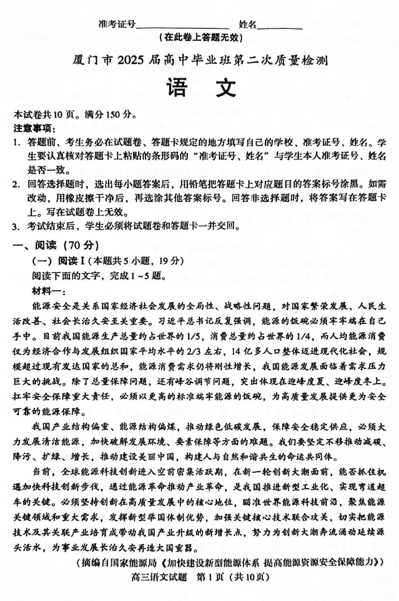 福建厦门2025届高三第二次质检语文试题及答案