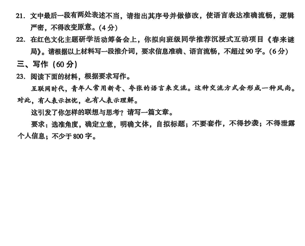 语文试题及答案解析