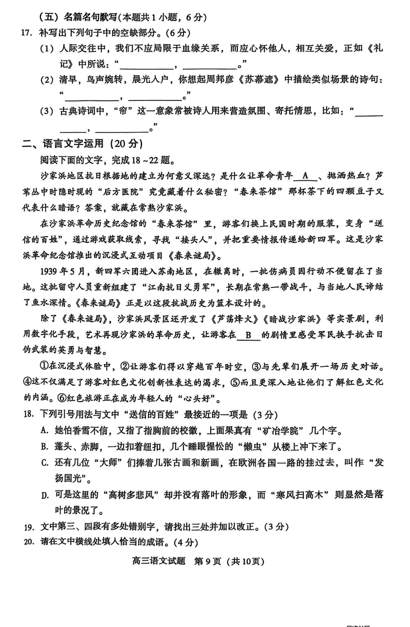 福建 语文试题
