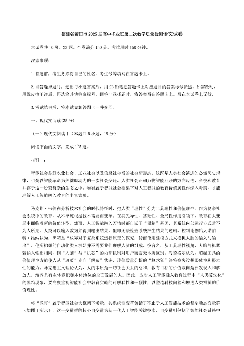 福建莆田2025届高三第二次质检语文考试已于近日开考,为方便考生考后及时查看考试情况,查漏补缺、弥补不足,本文整理了试题答案解析相关信息!