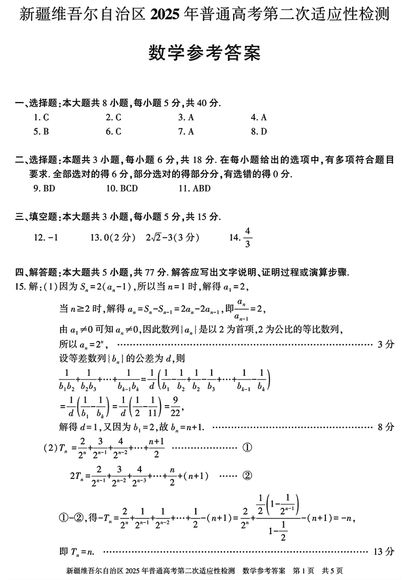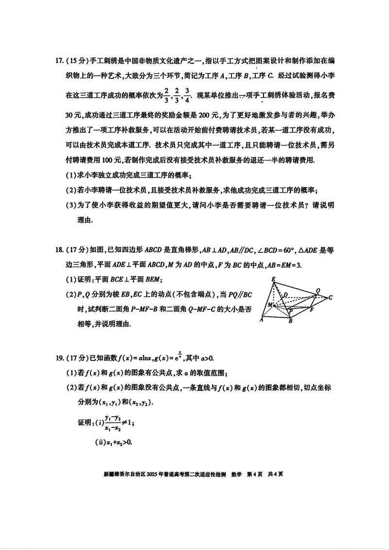 新疆2025年普通高考第二次适应性检测数学试题及答案 时间:2025-03-09 新疆 数学试题 新疆2025年普通高考第二次适应性检测数学考试已于近日开考,为方便考生考后及时查看考试情况,查漏补缺、弥补不足,本文整理了试题答案解析相关信息! 汇总:新疆2025年普通高考第二次适应性检测试题及答案汇总 数学试题及答案解析