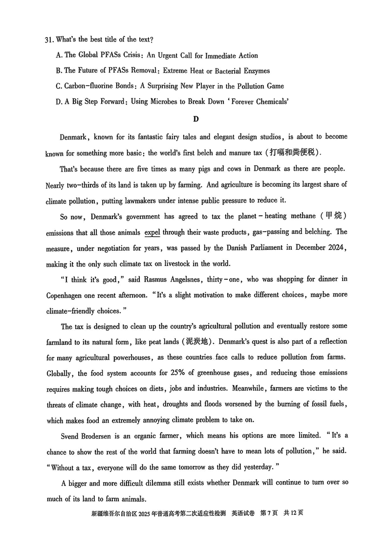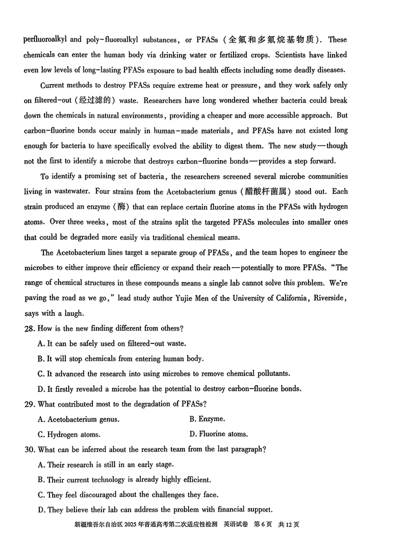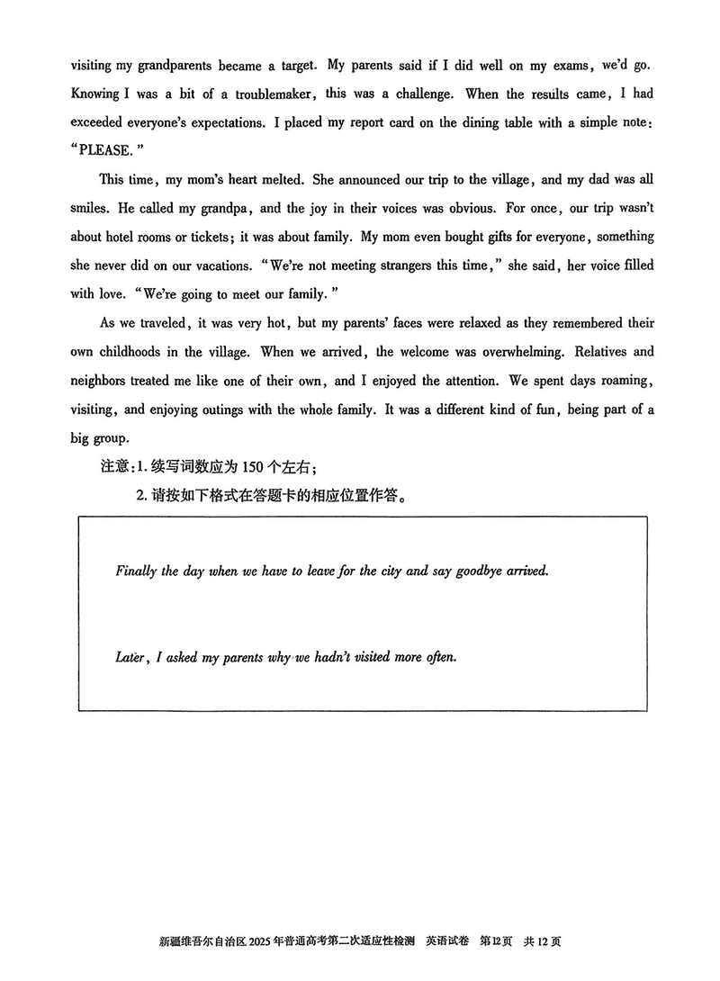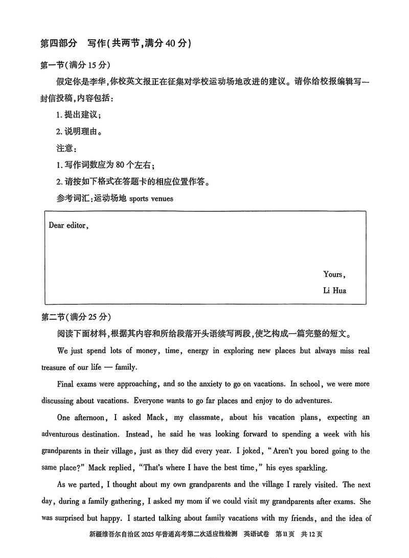 新疆2025年普通高考第二次适应性检测英语试题及答案 时间:2025-03-09 新疆 英语试题 新疆2025年普通高考第二次适应性检测英语考试已于近日开考,为方便考生考后及时查看考试情况,查漏补缺、弥补不足,本文整理了试题答案解析相关信息! 汇总:新疆2025年普通高考第二次适应性检测试题及答案汇总 英语试题及答案解析