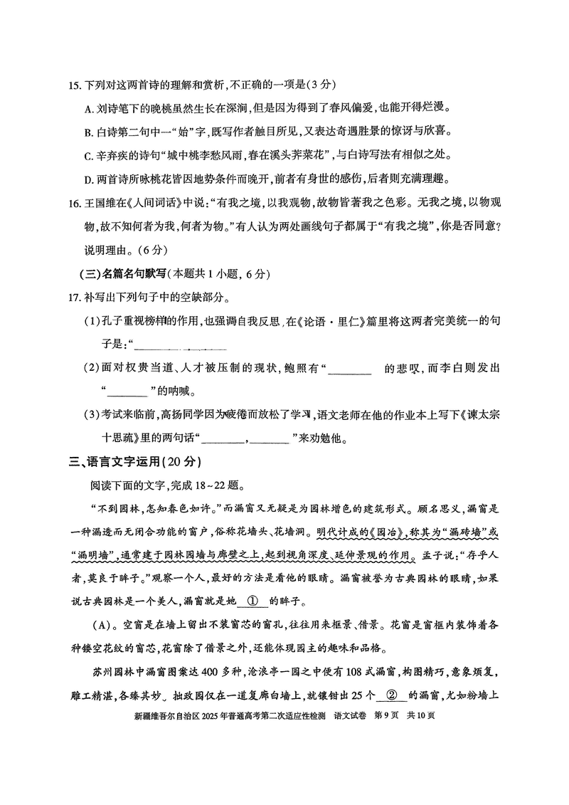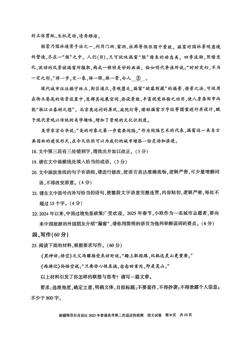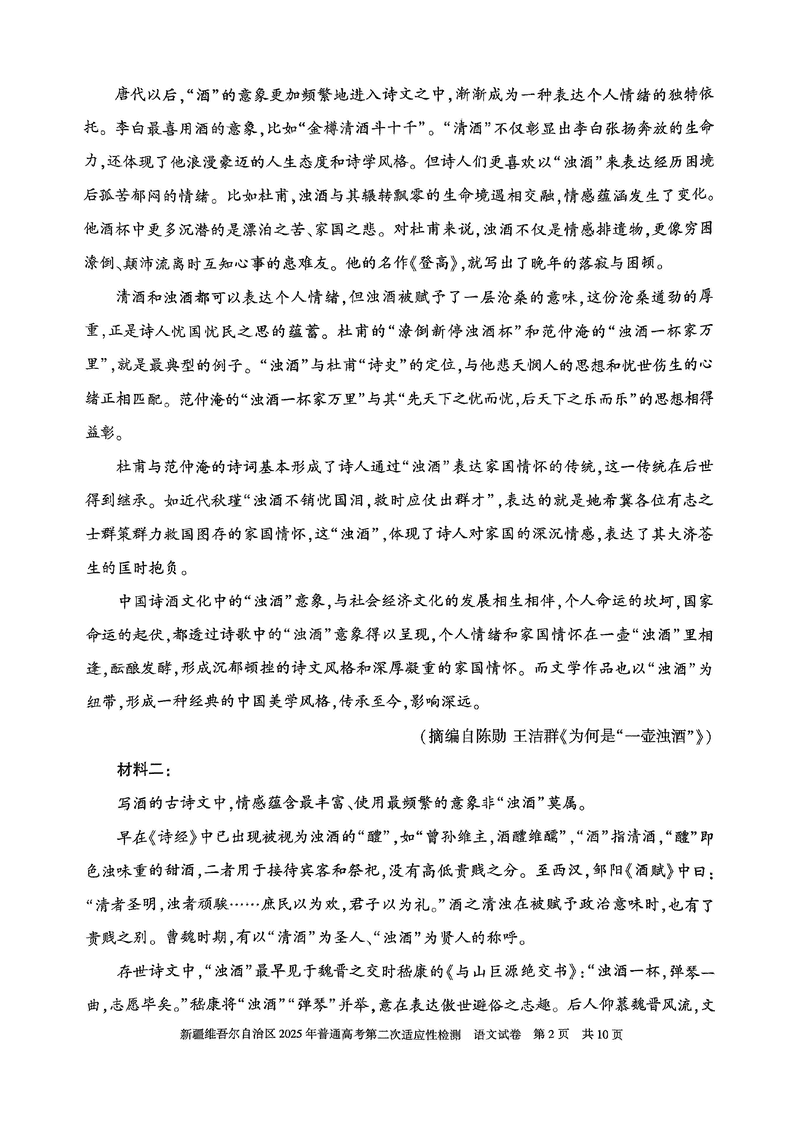 新疆2025年普通高考第二次适应性检测语文试题及答案 时间:2025-03-09 新疆 语文试题 新疆2025年普通高考第二次适应性检测语文考试已于近日开考,为方便考生考后及时查看考试情况,查漏补缺、弥补不足,本文整理了试题答案解析相关信息! 汇总:新疆2025年普通高考第二次适应性检测试题及答案汇总 语文试题及答案解析