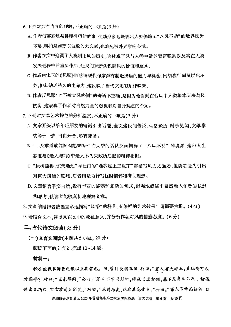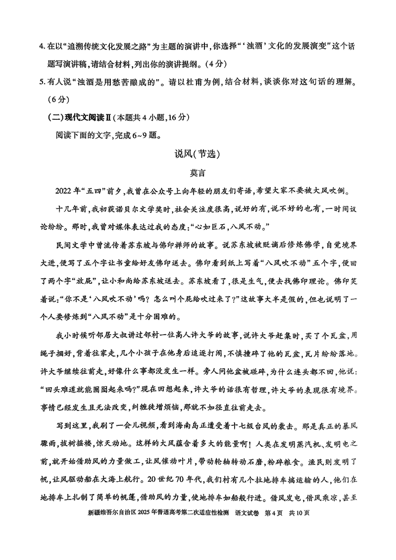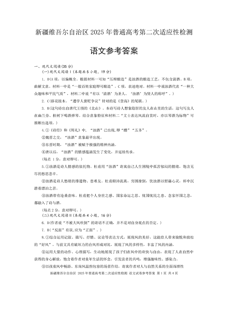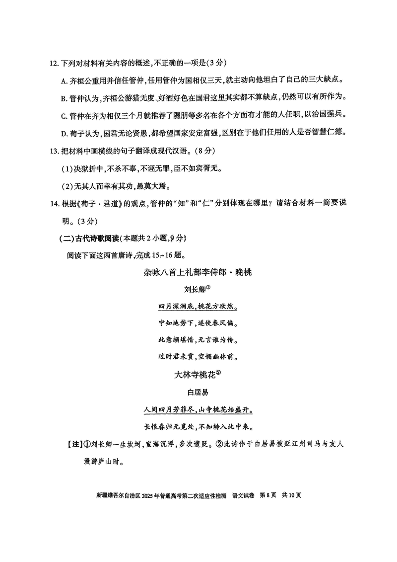 新疆2025年普通高考第二次适应性检测语文试题及答案 时间:2025-03-09 新疆 语文试题 新疆2025年普通高考第二次适应性检测语文考试已于近日开考,为方便考生考后及时查看考试情况,查漏补缺、弥补不足,本文整理了试题答案解析相关信息! 汇总:新疆2025年普通高考第二次适应性检测试题及答案汇总 语文试题及答案解析