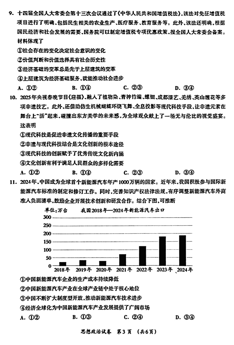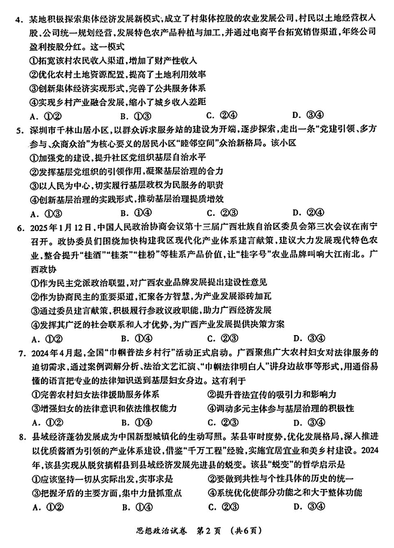 广西2025年3月高三第二次高考适应性测政治试题及答案