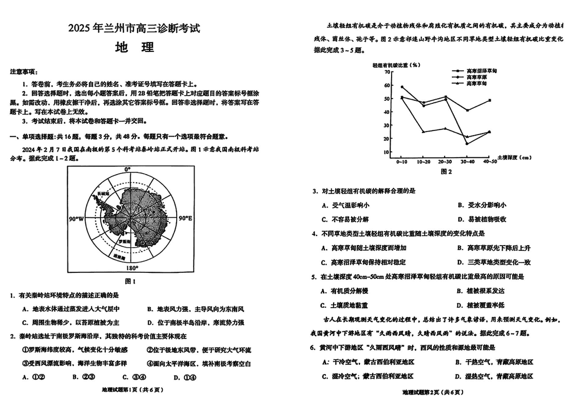 兰州一模2025届高三下学期诊断地理试题及答案 时间:2025-03-09 甘肃 文综试题 兰州一模2025届高三下学期诊断地理考试已于近日开考,为方便考生考后及时查看考试情况,查漏补缺、弥补不足,本文整理了试题答案解析相关信息! 汇总:兰州一模2025届高三下学期诊断考试试题及答案汇总 地理试题及答案解析