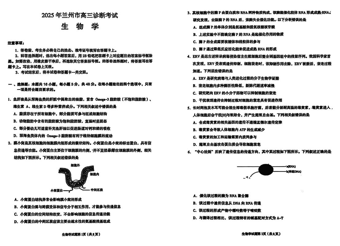 兰州一模2025届高三下学期诊断生物试题及答案 时间:2025-03-09 甘肃 理综试题 兰州一模2025届高三下学期诊断生物考试已于近日开考,为方便考生考后及时查看考试情况,查漏补缺、弥补不足,本文整理了试题答案解析相关信息! 汇总:兰州一模2025届高三下学期诊断考试试题及答案汇总 生物试题及答案解析