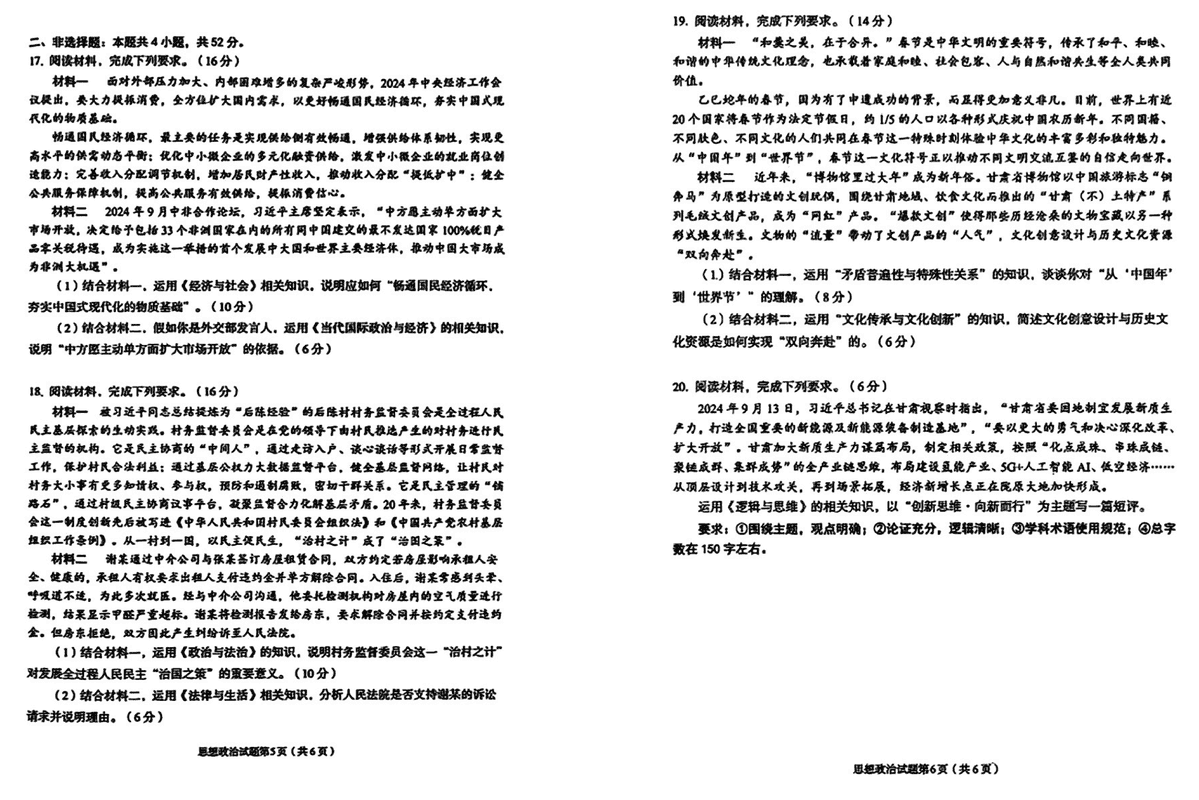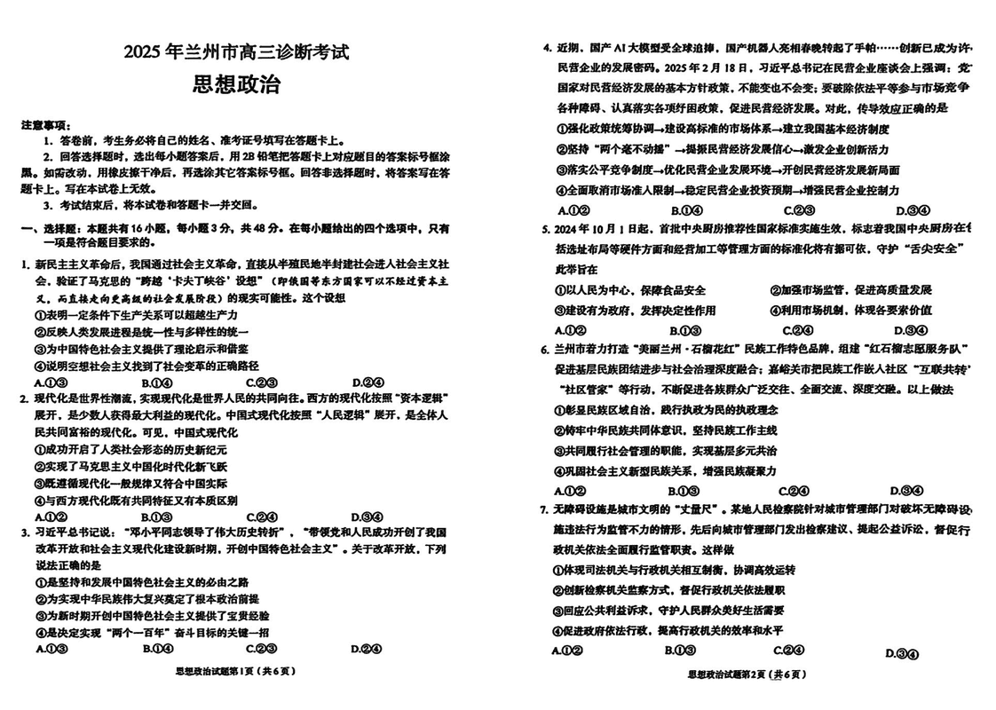 兰州一模2025届高三下学期诊断政治试题及答案 时间:2025-03-09 甘肃 文综试题 兰州一模2025届高三下学期诊断政治考试已于近日开考,为方便考生考后及时查看考试情况,查漏补缺、弥补不足,本文整理了试题答案解析相关信息! 汇总:兰州一模2025届高三下学期诊断考试试题及答案汇总 政治试题及答案解析