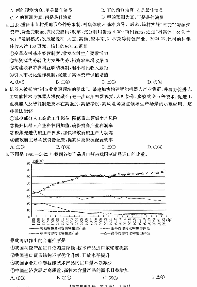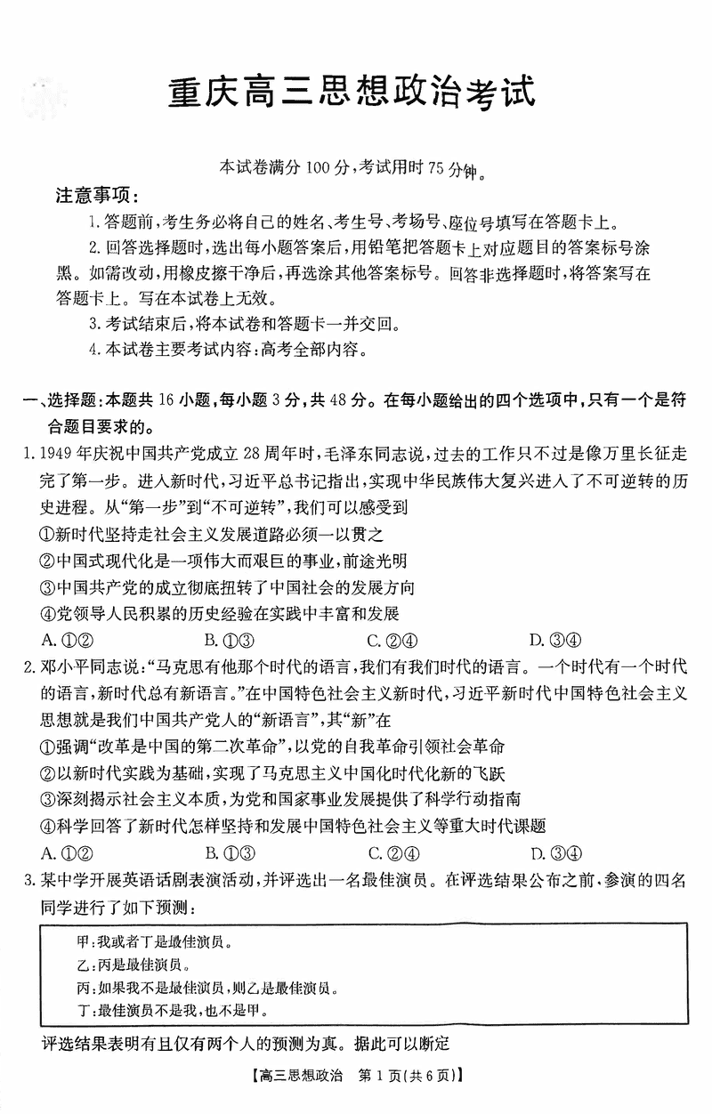 重庆市好教育联盟2025届高三2月联考政治试题及答案 时间:2025-03-09 重庆 文综试题 重庆市好教育联盟2025届高三2月联考政治考试已于近日开考,为方便考生考后及时查看考试情况,查漏补缺、弥补不足,本文整理了试题答案解析相关信息! 汇总:重庆市好教育联盟2025届高三2月联考试题及答案汇总 政治试题及答案解析