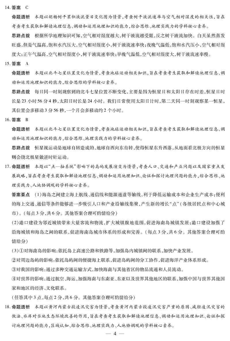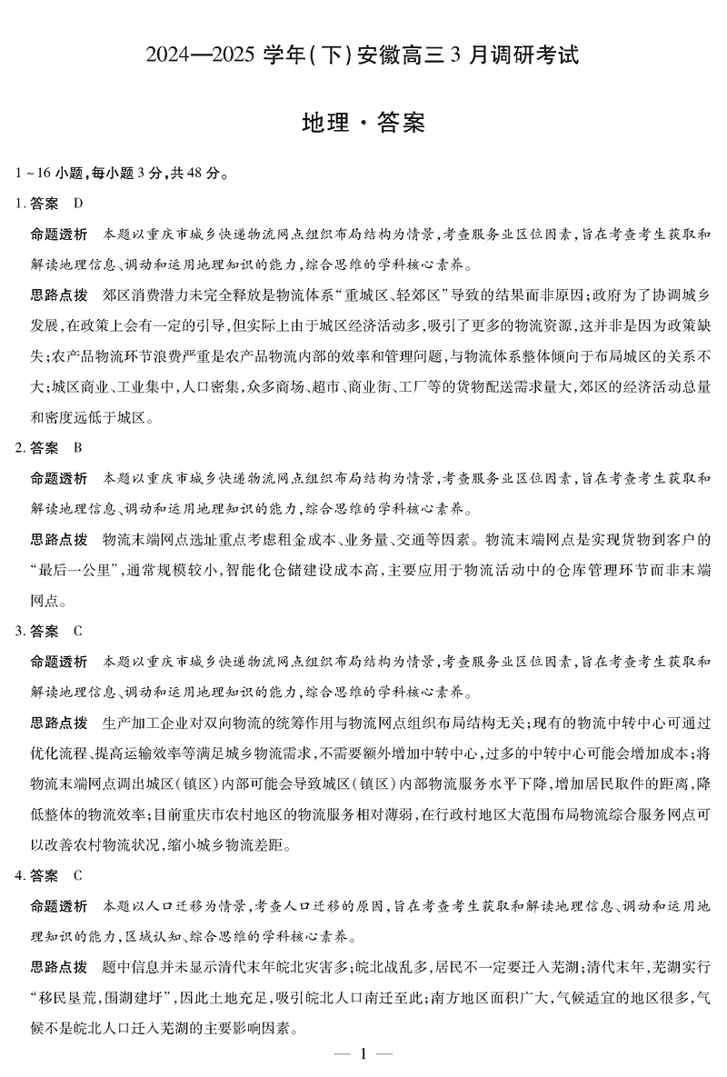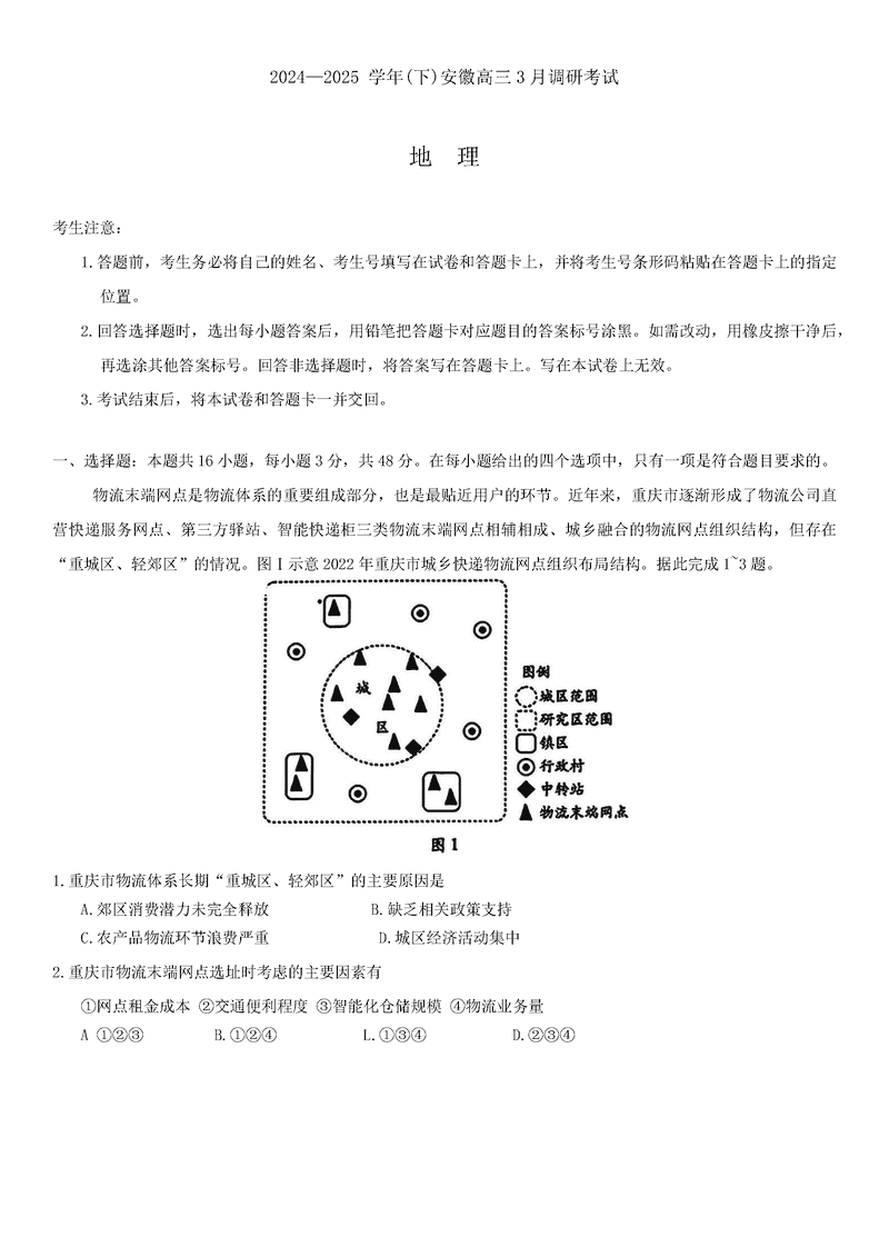 安徽省天一大联考2025届高三3月调研地理试题及答案