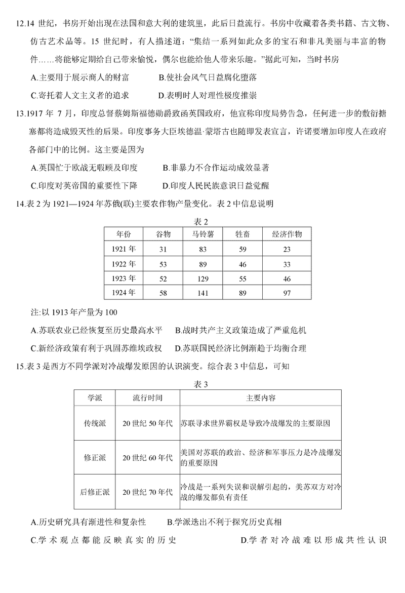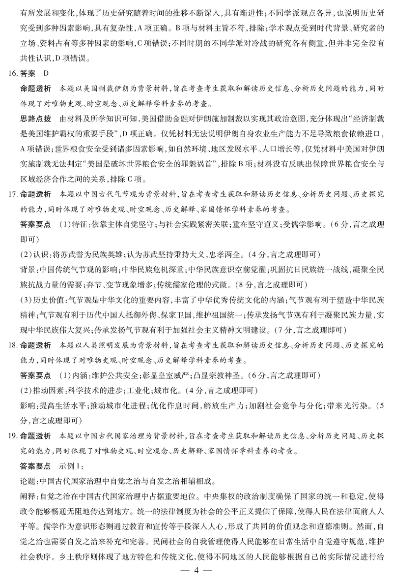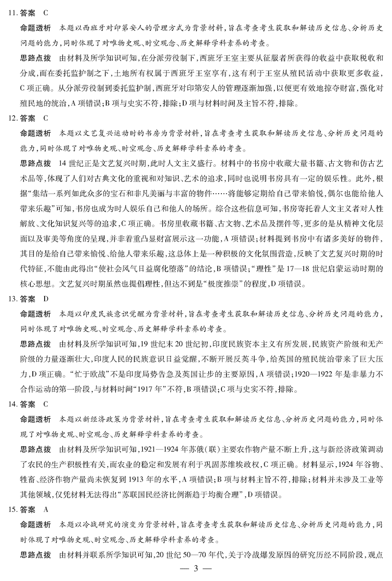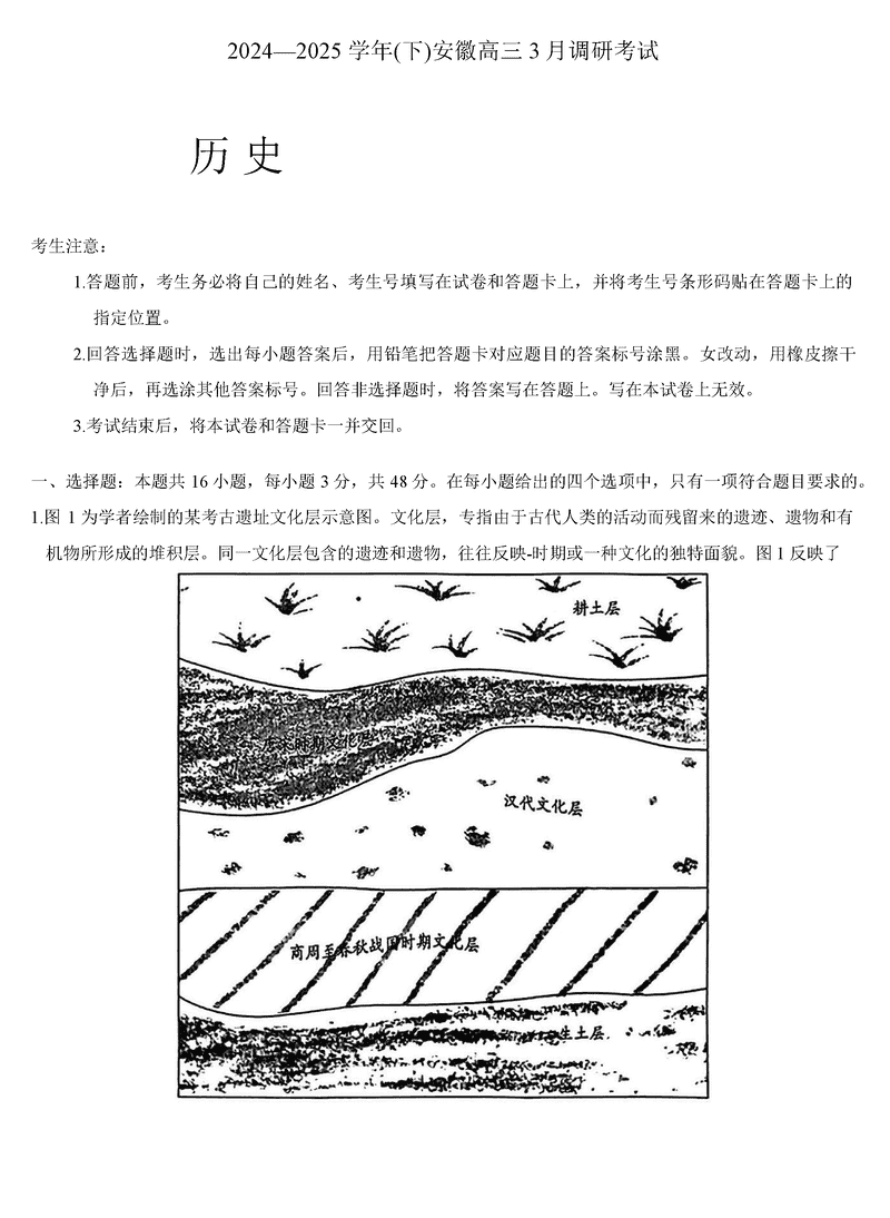 安徽省天一大联考2025届高三3月调研历史试题及答案