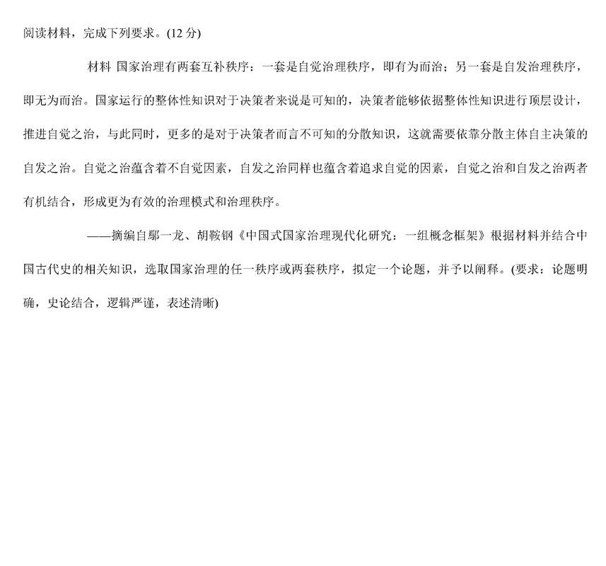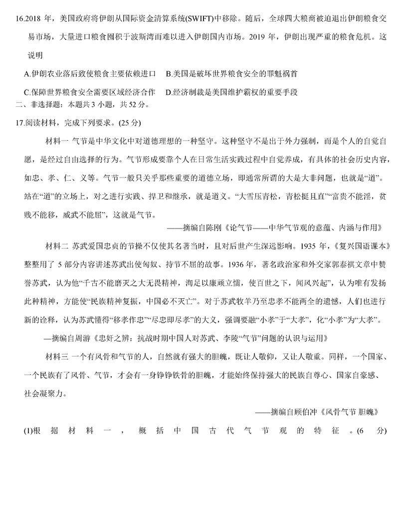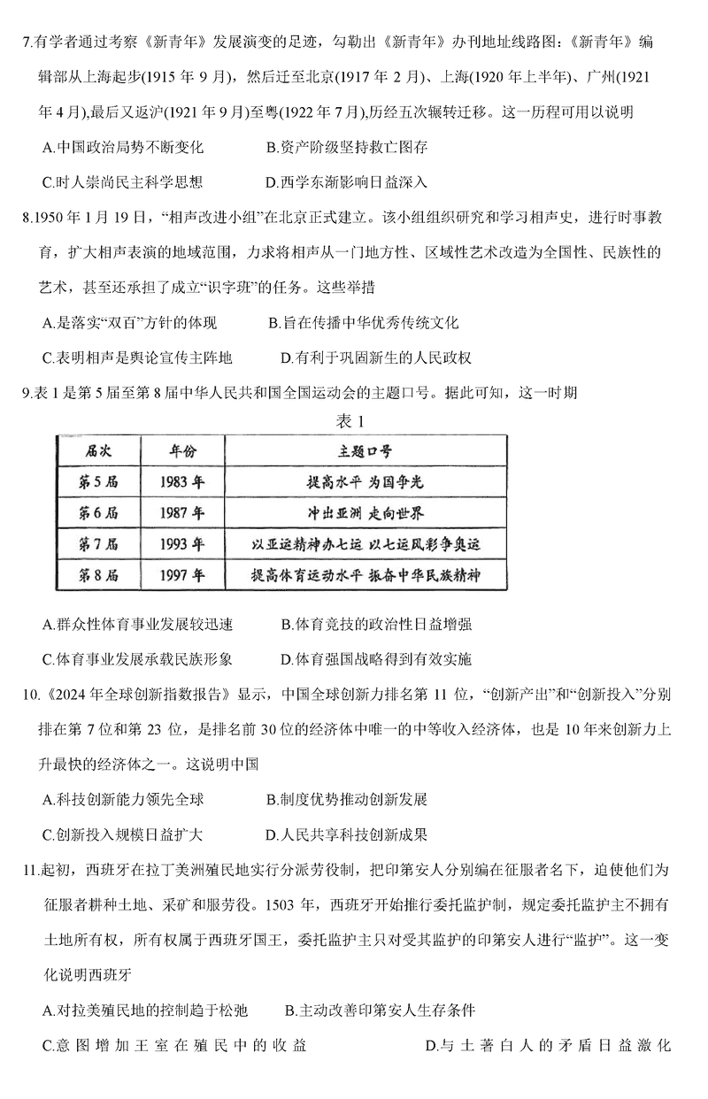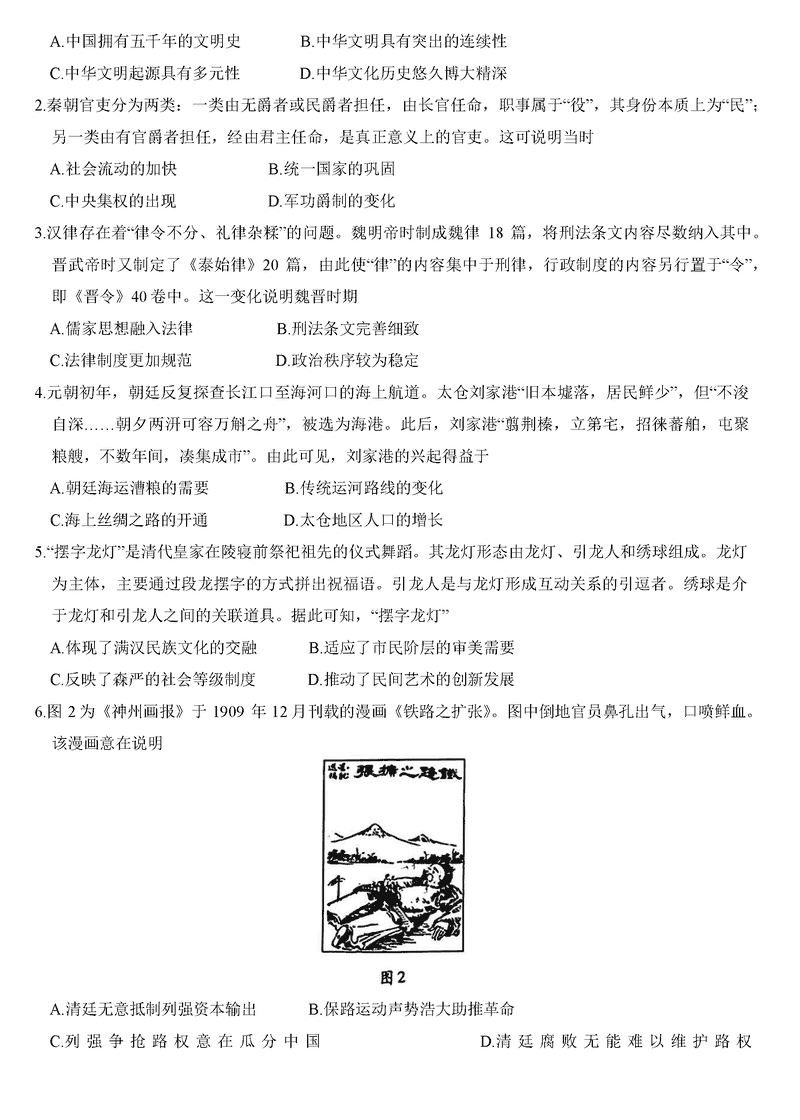 安徽省天一大联考2025届高三3月调研历史试题及答案