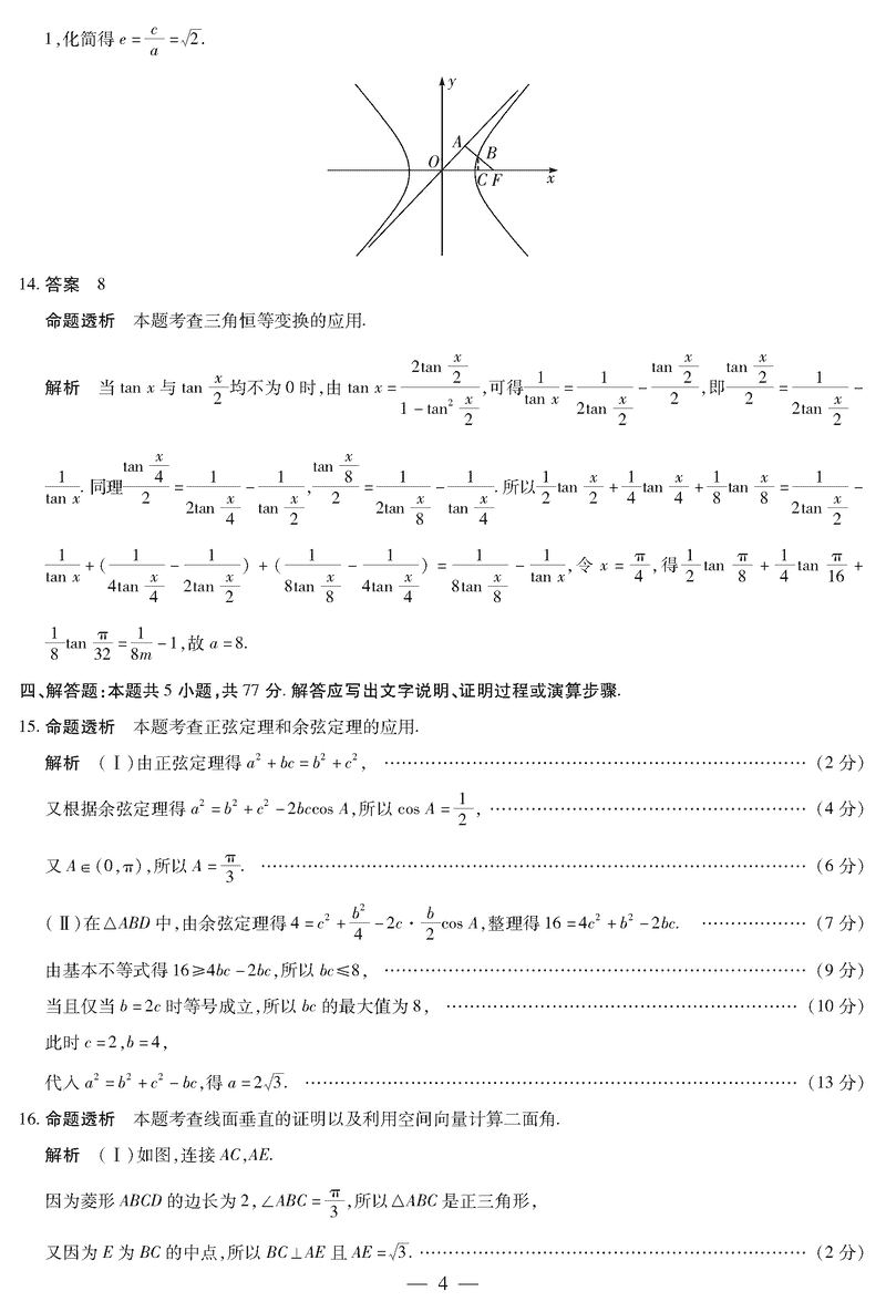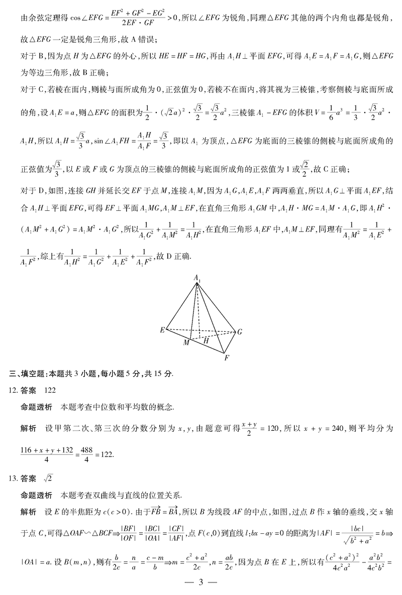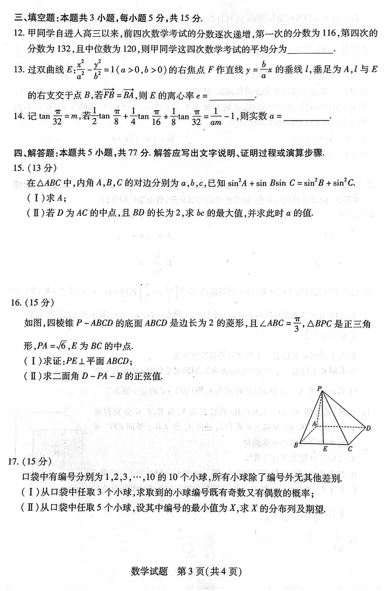 安徽省天一大联考2025届高三3月调研数学试题及答案