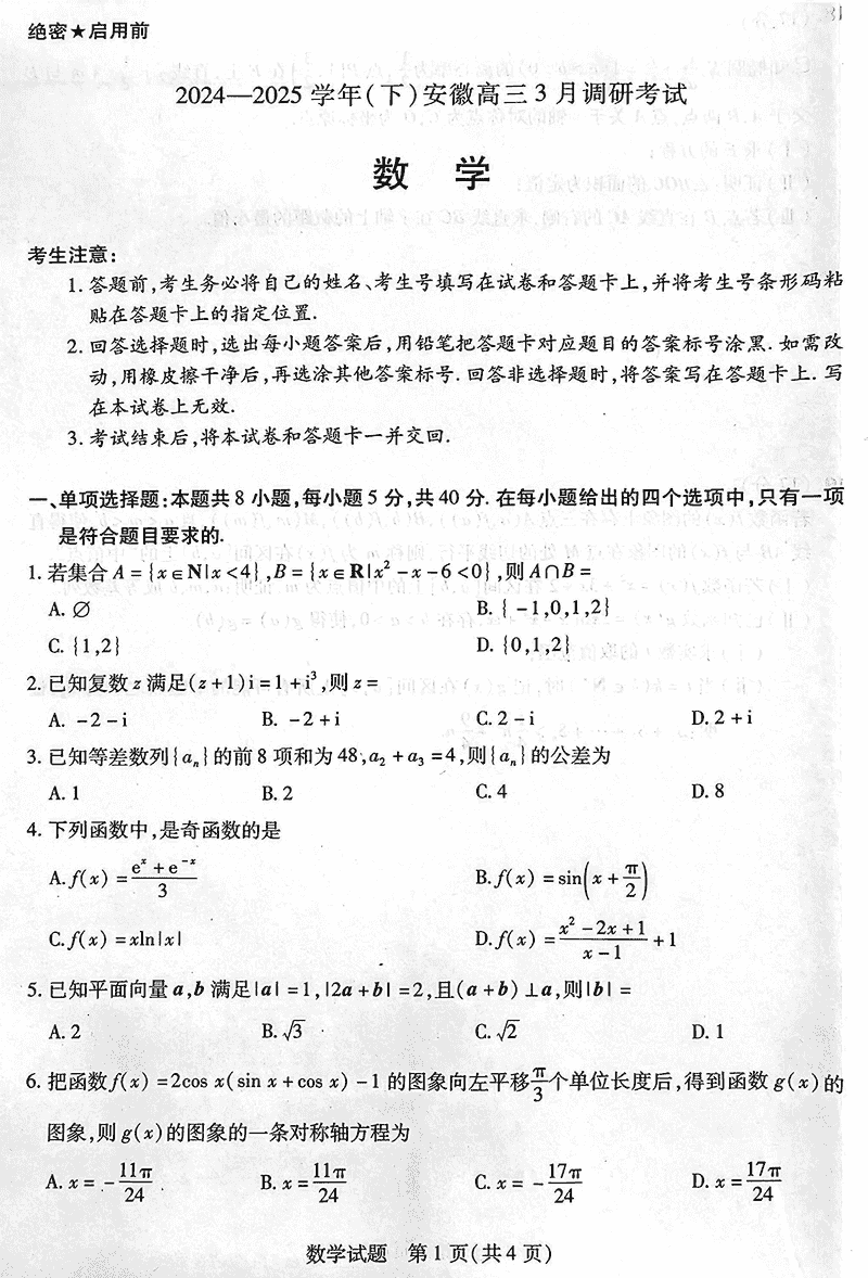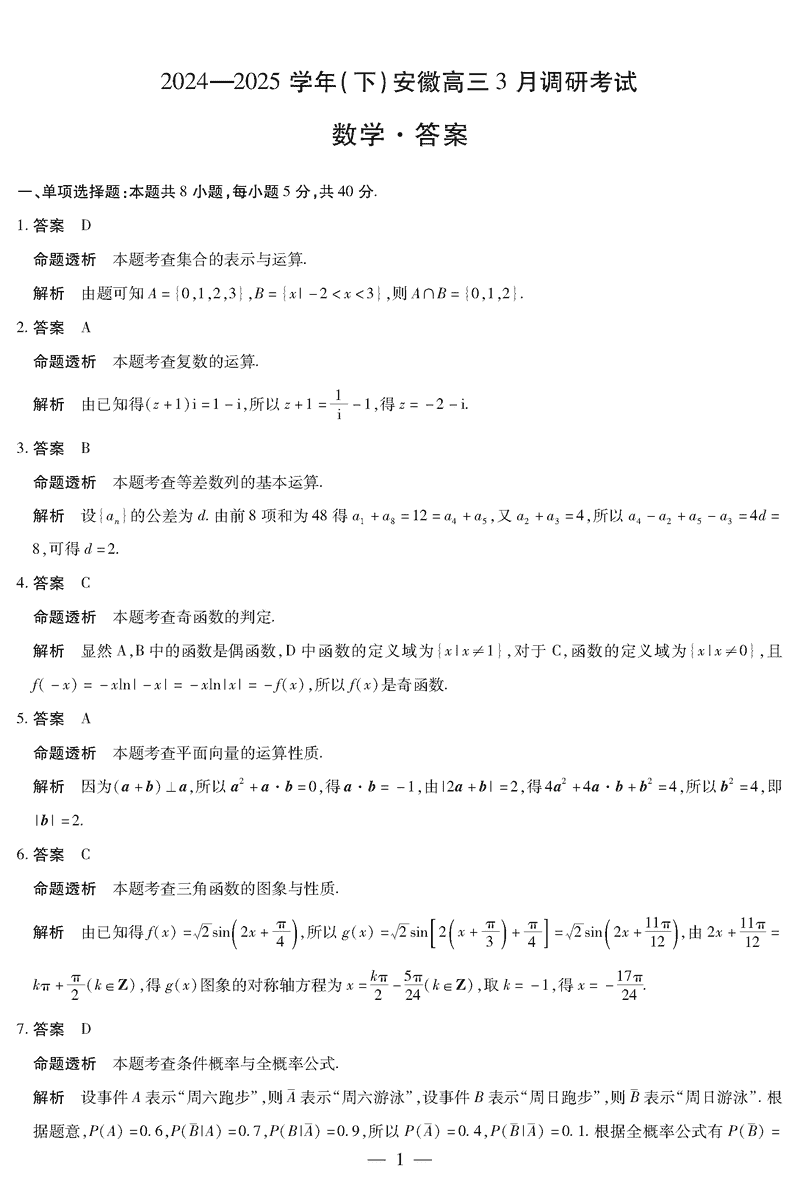 安徽省天一大联考2025届高三3月调研数学考试已于近日开考,为方便考生考后及时查看考试情况,查漏补缺、弥补不足,本文整理了试题答案解析相关信息!