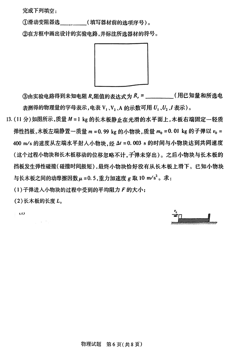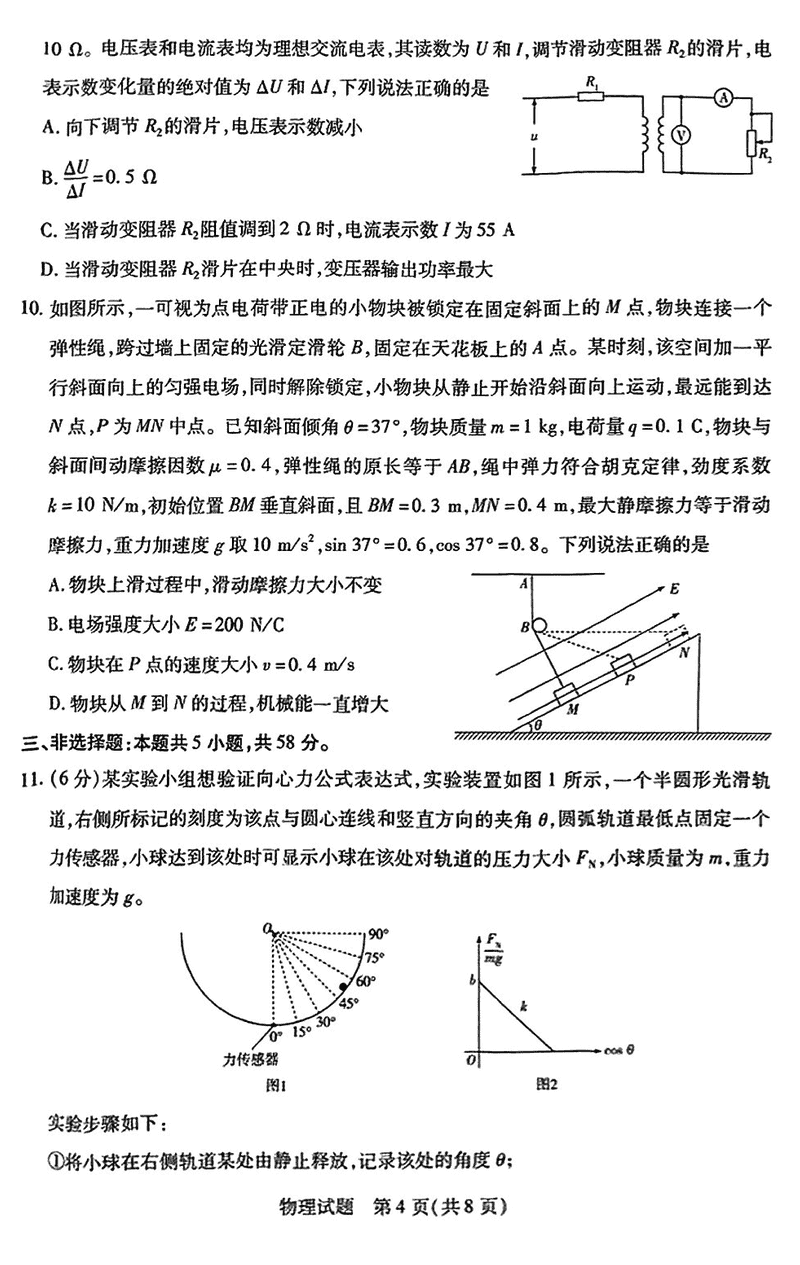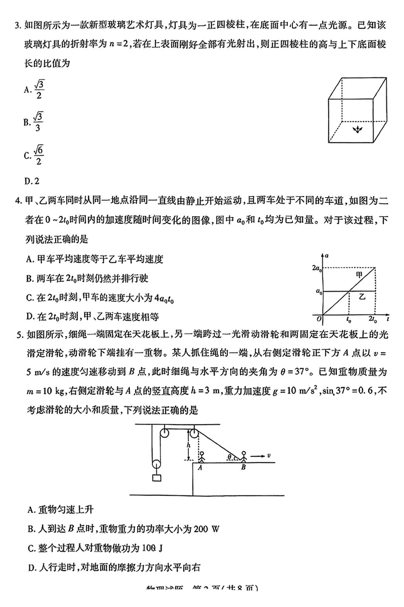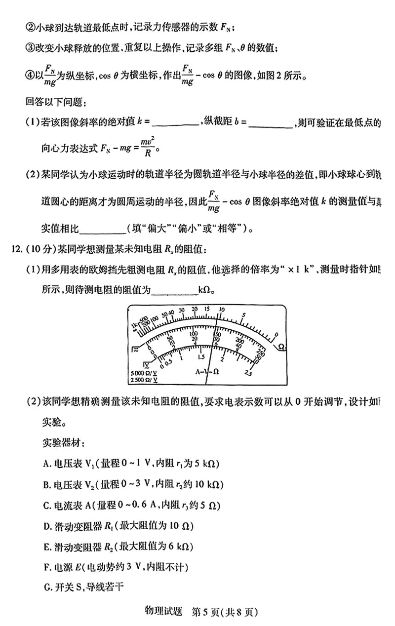 安徽省天一大联考2025届高三3月调研物理试题及答案
