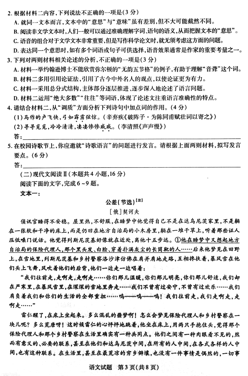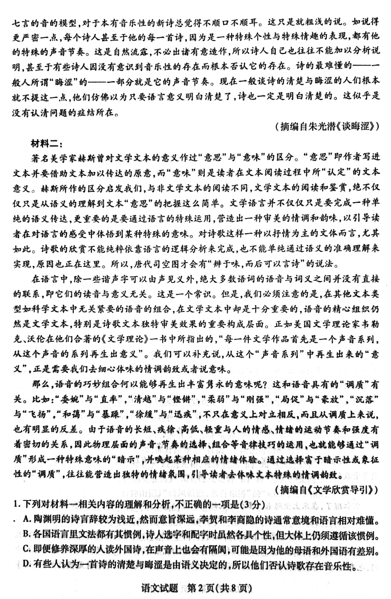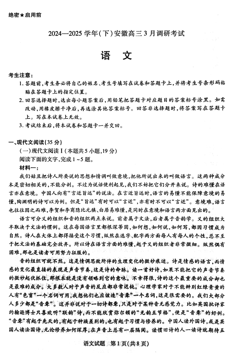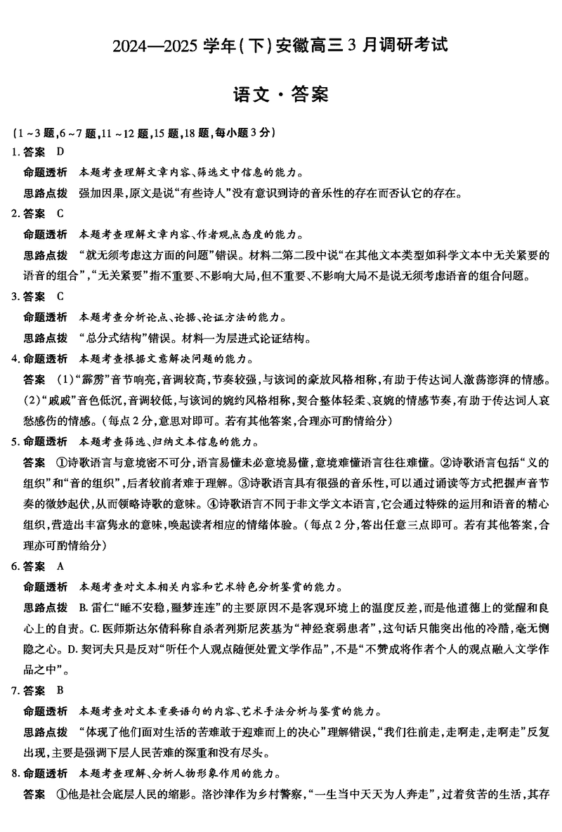 安徽省天一大联考2025届高三3月调研语文试题及答案