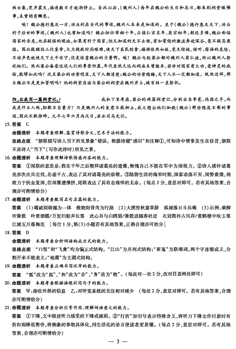 安徽省天一大联考2025届高三3月调研语文考试已于近日开考,为方便考生考后及时查看考试情况,查漏补缺、弥补不足,本文整理了试题答案解析相关信息!