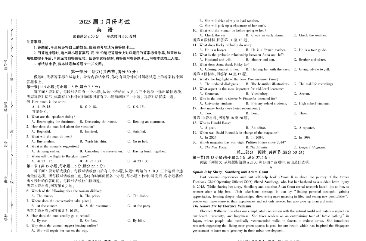 陕西省菁师联盟2025届高三3月联考英语试题及答案 时间:2025-03-09 陕西 英语试题 陕西省菁师联盟2025届高三3月联考英语考试已于近日开考,为方便考生考后及时查看考试情况,查漏补缺、弥补不足,本文整理了试题答案解析相关信息! 汇总:陕西省菁师联盟2025届高三3月联考试题及答案汇总 英语试题及答案解析