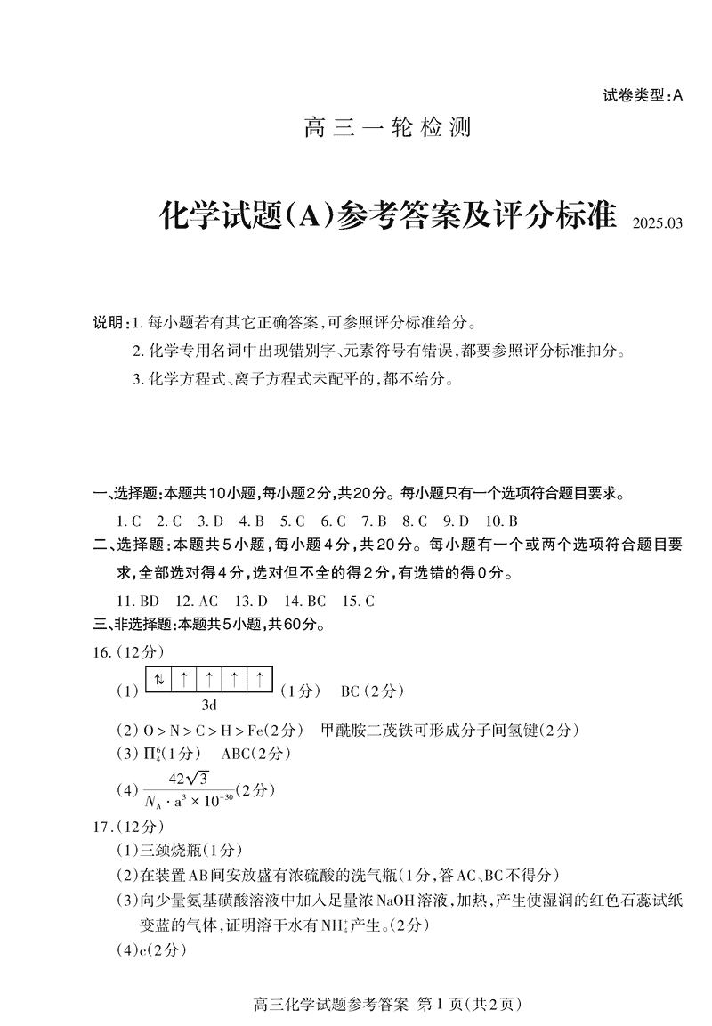 泰安一模2025届高三一轮检测化学试题及答案 时间:2025-03-09 山东 理综试题 泰安一模2025届高三一轮检测化学考试已于近日开考,为方便考生考后及时查看考试情况,查漏补缺、弥补不足,本文整理了试题答案解析相关信息! 汇总:泰安一模2025届高三一轮检测试题及答案汇总 化学试题及答案解析