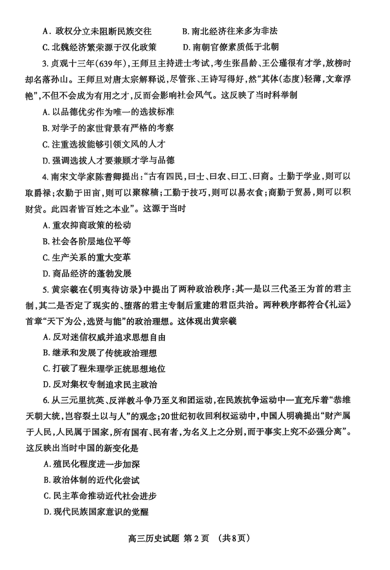 泰安一模2025届高三一轮检测历史试题及答案 时间:2025-03-09 山东 文综试题 泰安一模2025届高三一轮检测历史考试已于近日开考,为方便考生考后及时查看考试情况,查漏补缺、弥补不足,本文整理了试题答案解析相关信息! 汇总:泰安一模2025届高三一轮检测试题及答案汇总 历史试题及答案解析
