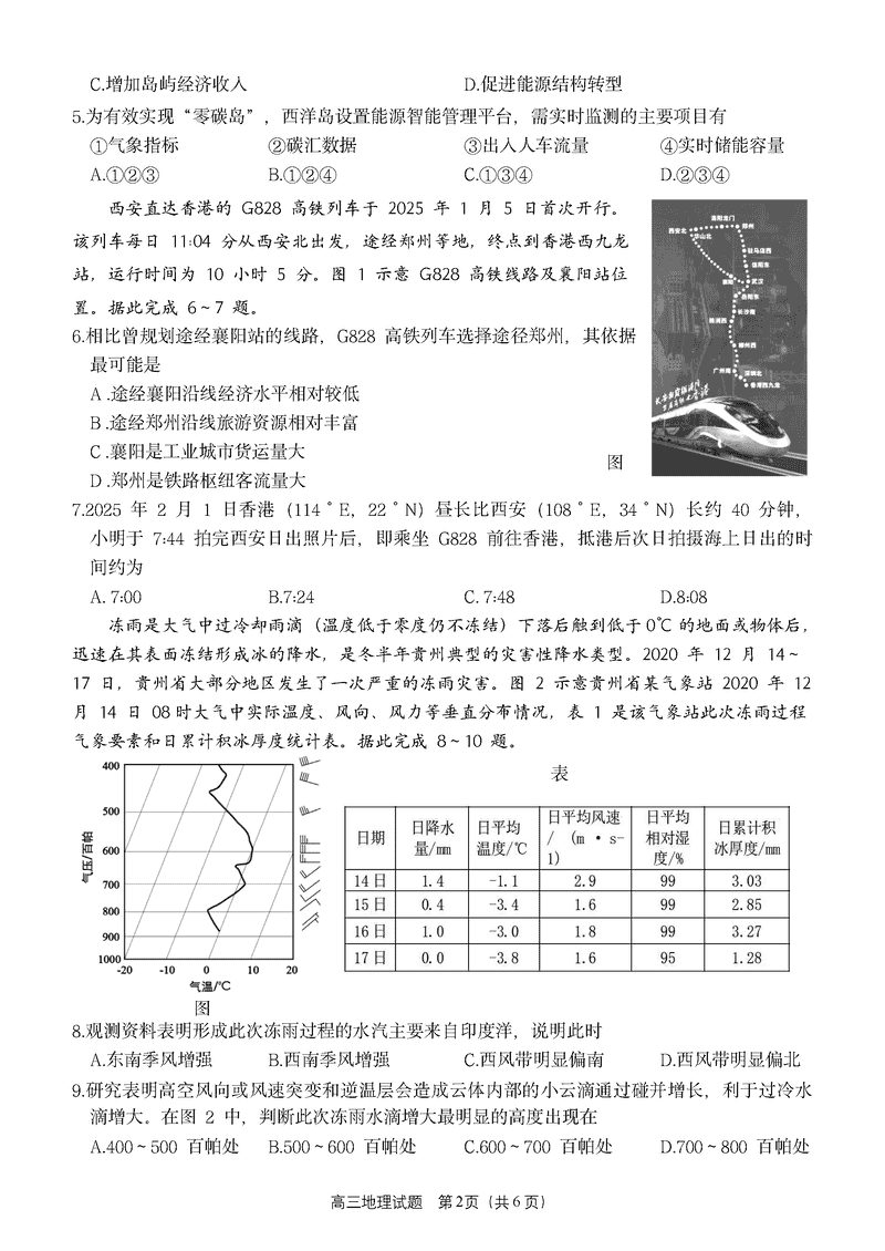 地理试题及答案解析