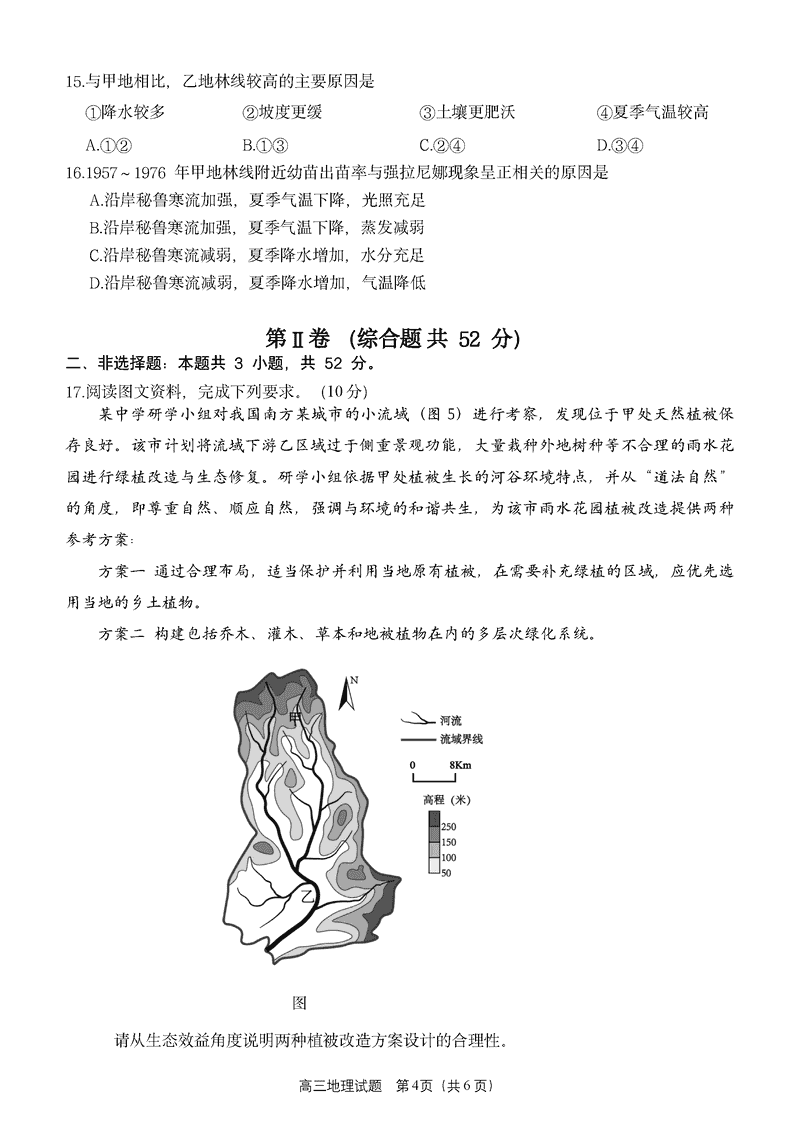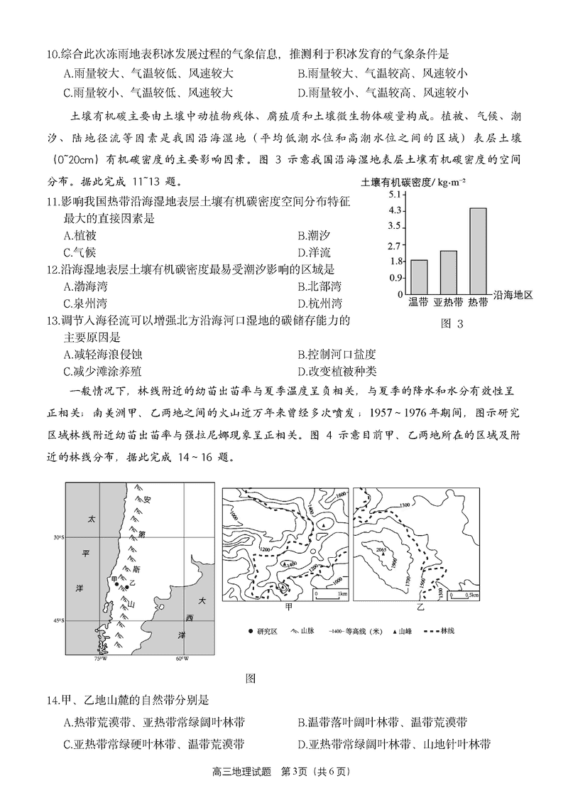 福建泉州2025届高中毕业班质量监测(三)地理试题及答案