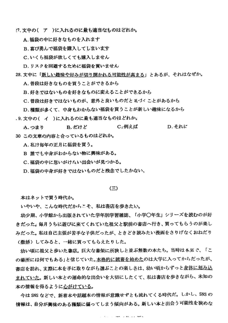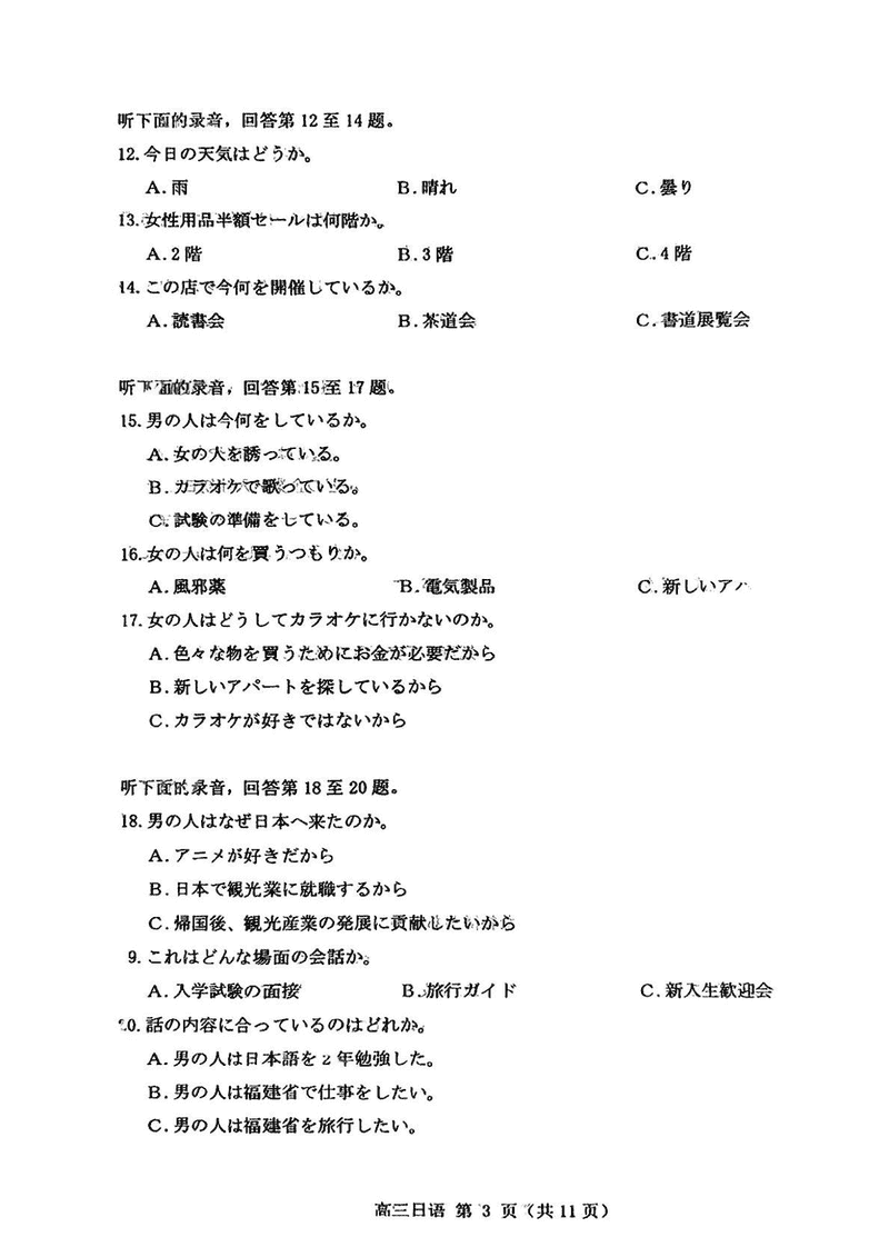 福建泉州2025届高中毕业班质量监测(三)日语试题及答案