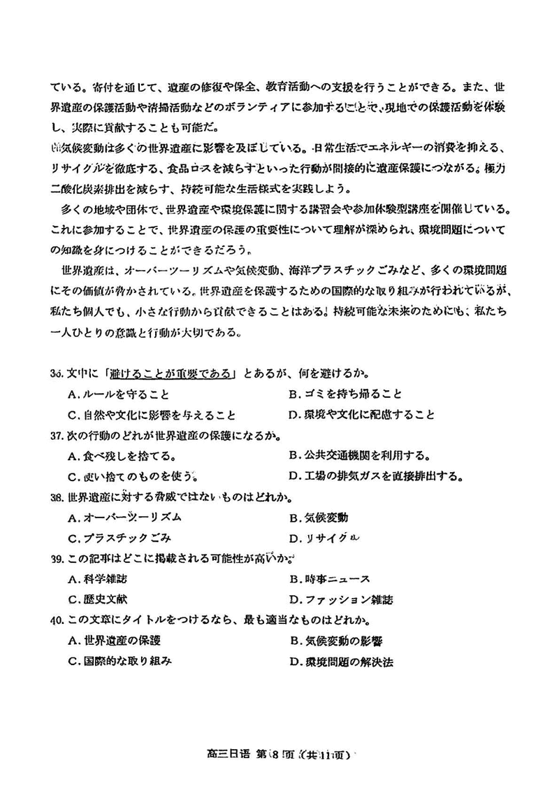 福建泉州2025届高中毕业班质量监测(三)日语考试已于近日开考,为方便考生考后及时查看考试情况,查漏补缺、弥补不足,本文整理了试题答案解析相关信息!