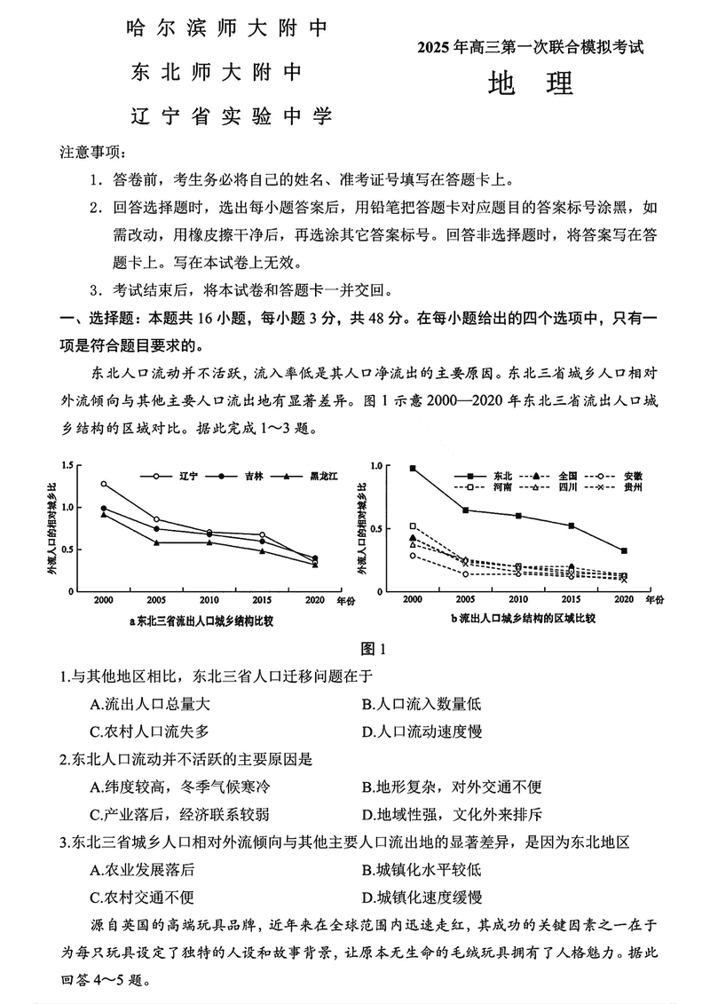 东北三省三校2025年高三第一次联考地理试题及答案 时间:2025-03-09 吉林 文综试题 东北三省三校2025年高三第一次联考地理考试已于近日开考,为方便考生考后及时查看考试情况,查漏补缺、弥补不足,本文整理了试题答案解析相关信息! 汇总:东北三省三校2025年高三第一次联考试题及答案汇总 地理试题及答案解析