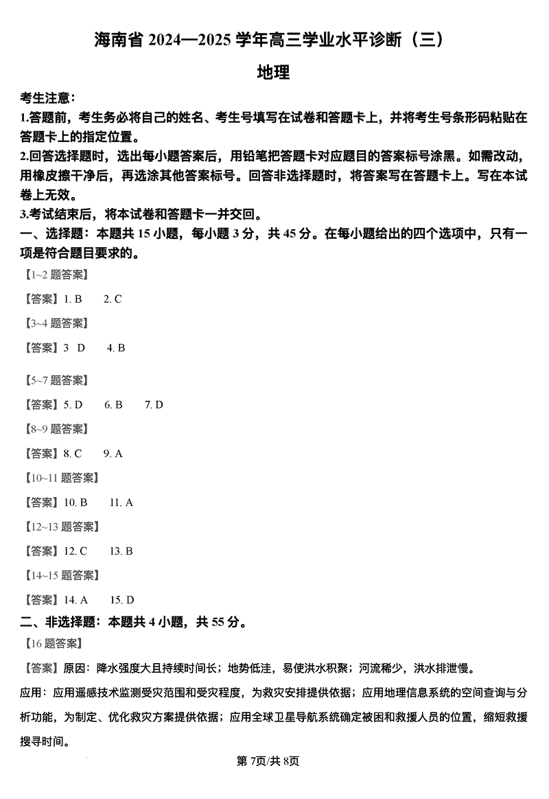 海南省天一大联考2024-2025学年高三学业水平诊断(三)地理考试已于近日开考,为方便考生考后及时查看考试情况,查漏补缺、弥补不足,本文整理了试题答案解析相关信息!