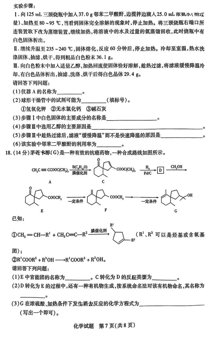 海南省天一大联考2024-2025学年高三学业水平诊断(三)化学试题及答案