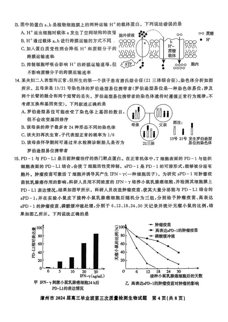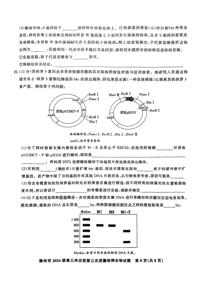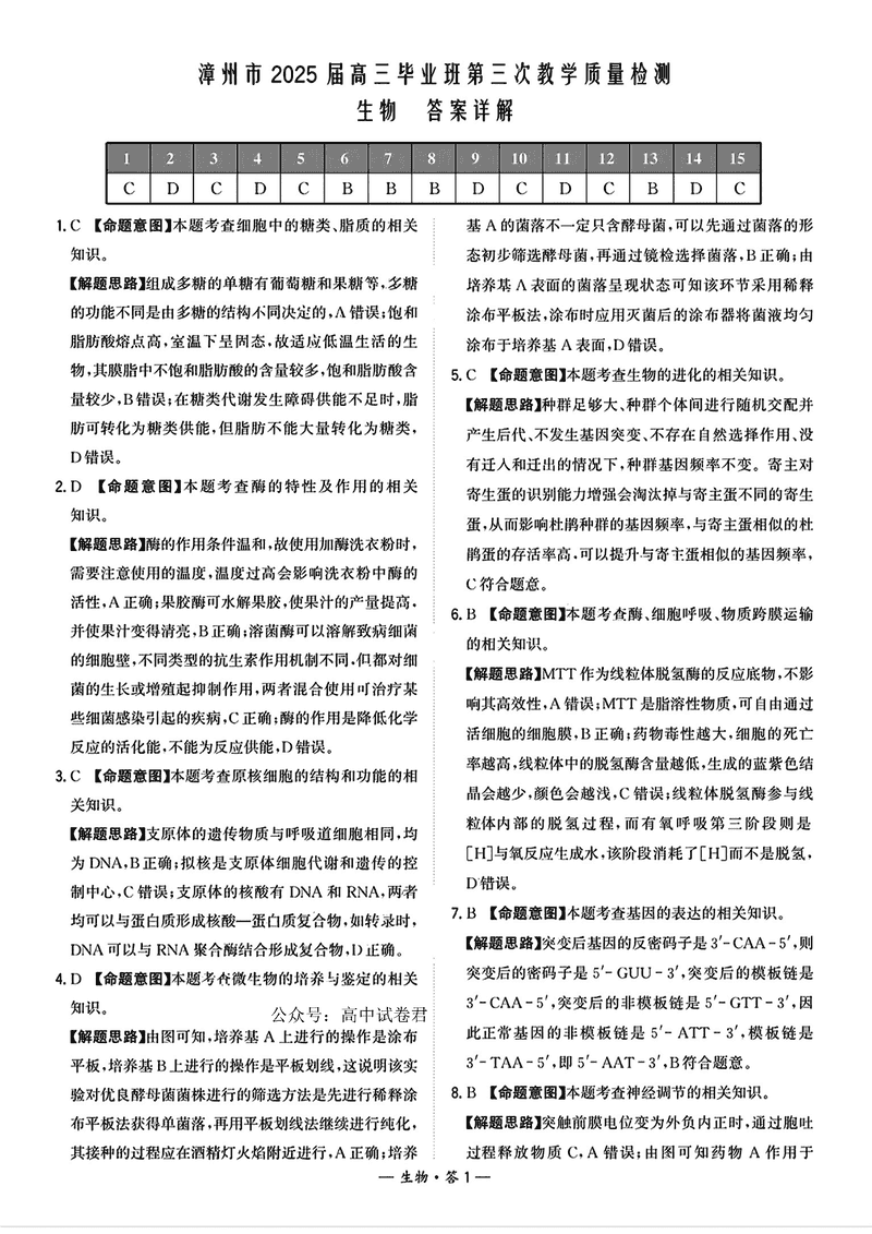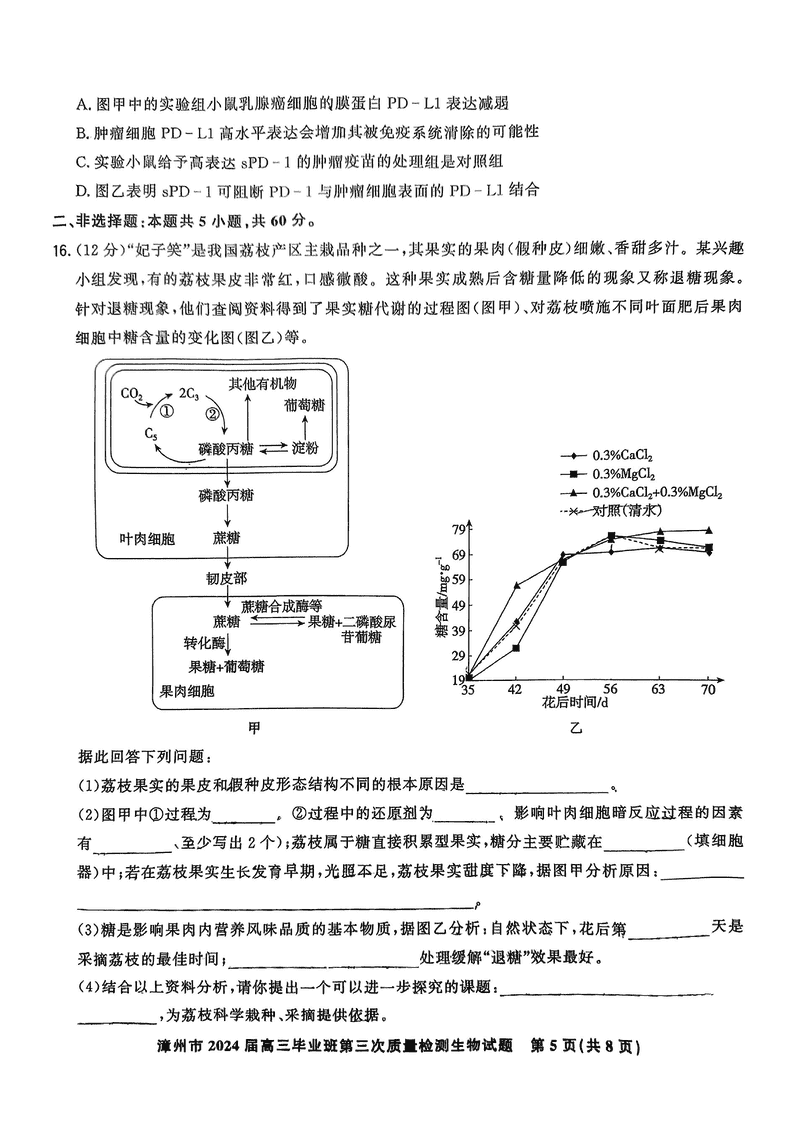 漳州市2025届高三第三次教学质检生物试题及答案 时间:2025-03-10 福建 理综试题 漳州市2025届高三第三次教学质检生物考试已于近日开考,为方便考生考后及时查看考试情况,查漏补缺、弥补不足,本文整理了试题答案解析相关信息! 汇总:漳州市2025届高三第三次教学质量检测试题及答案汇总 生物试题及答案解析