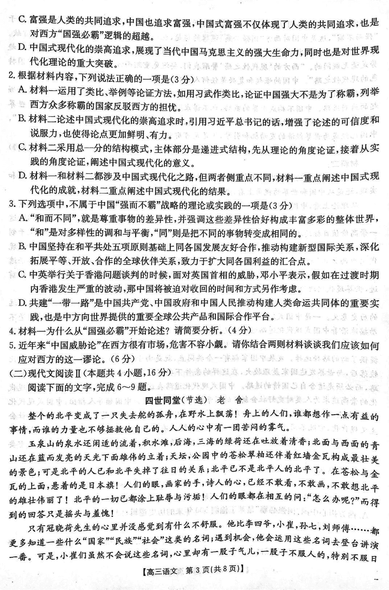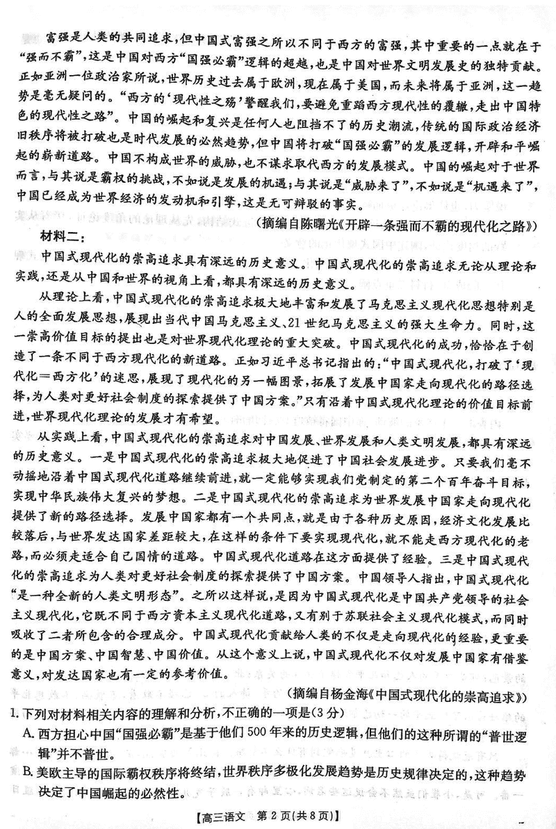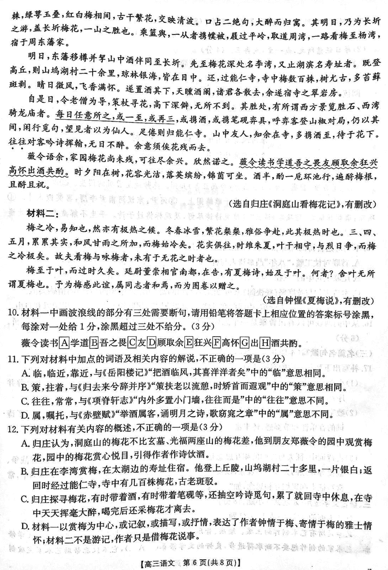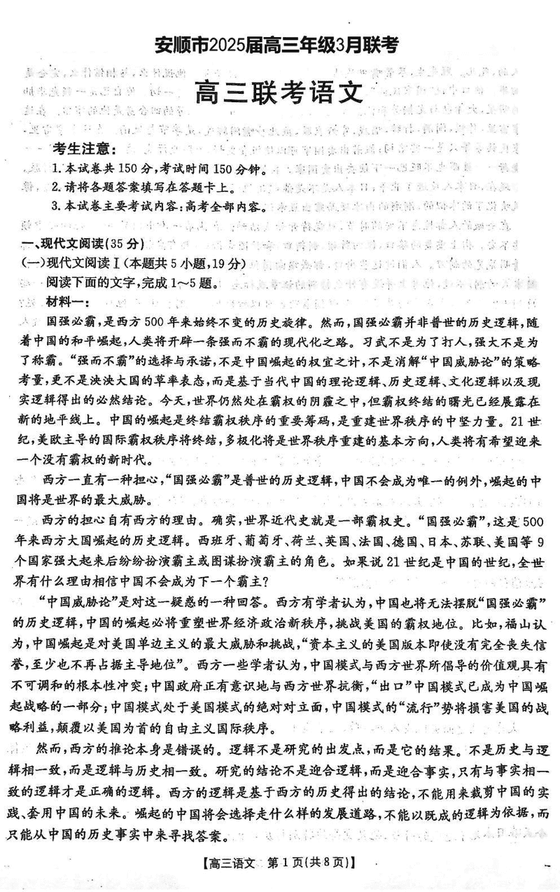 贵州安顺2025届高三下学期3月二模联考语文试题及答案