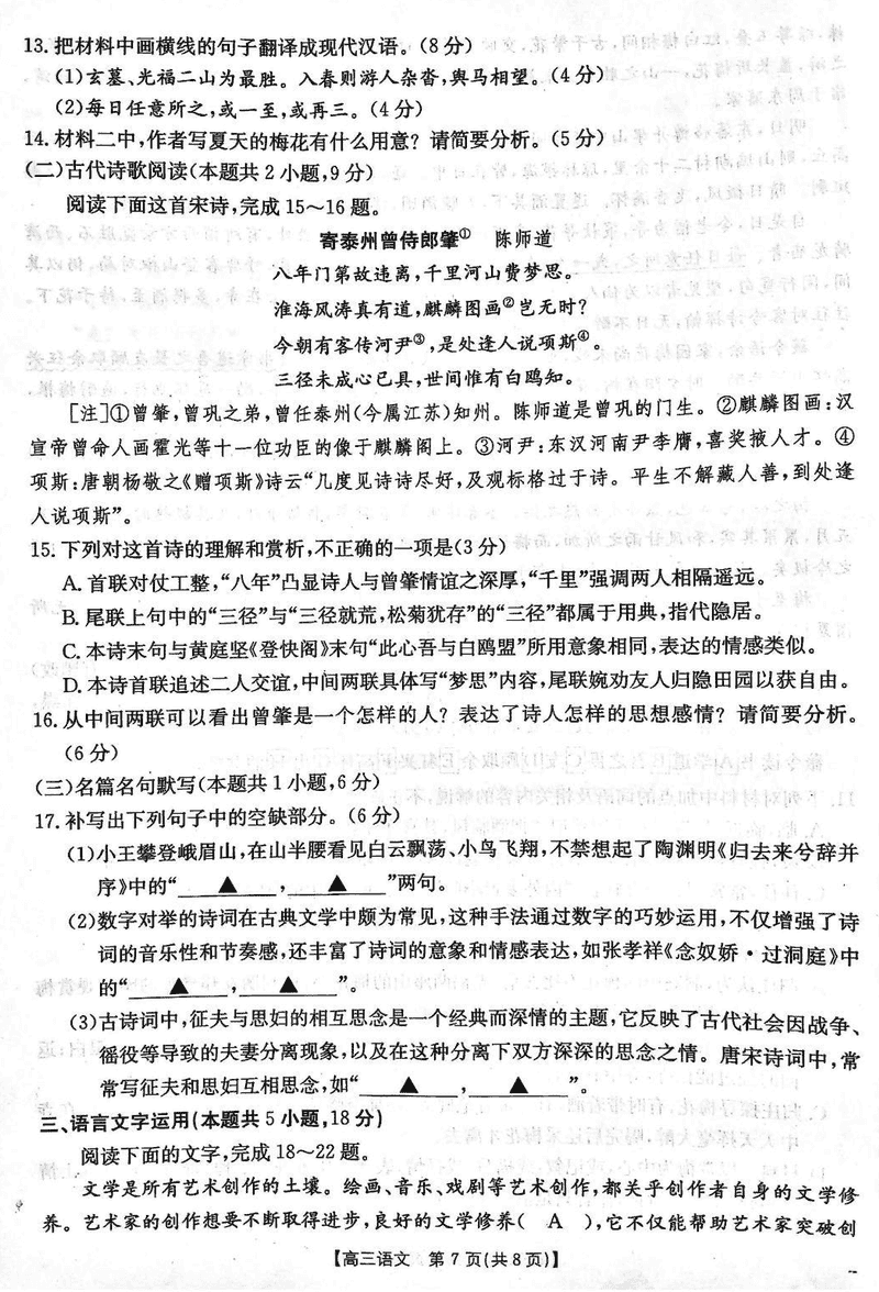 贵州 语文试题