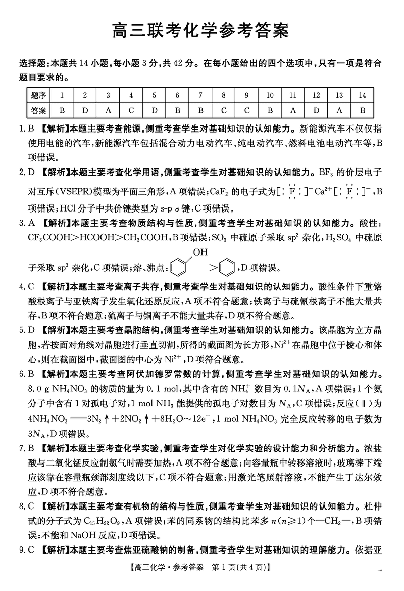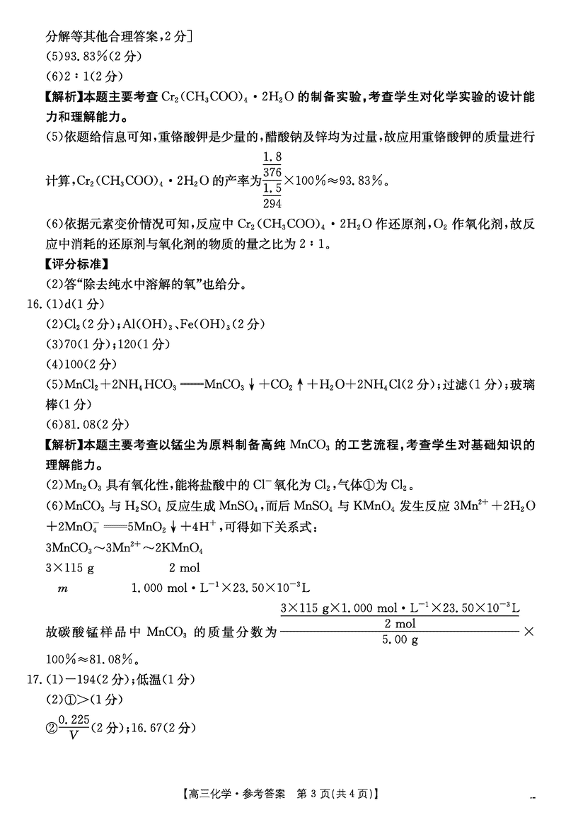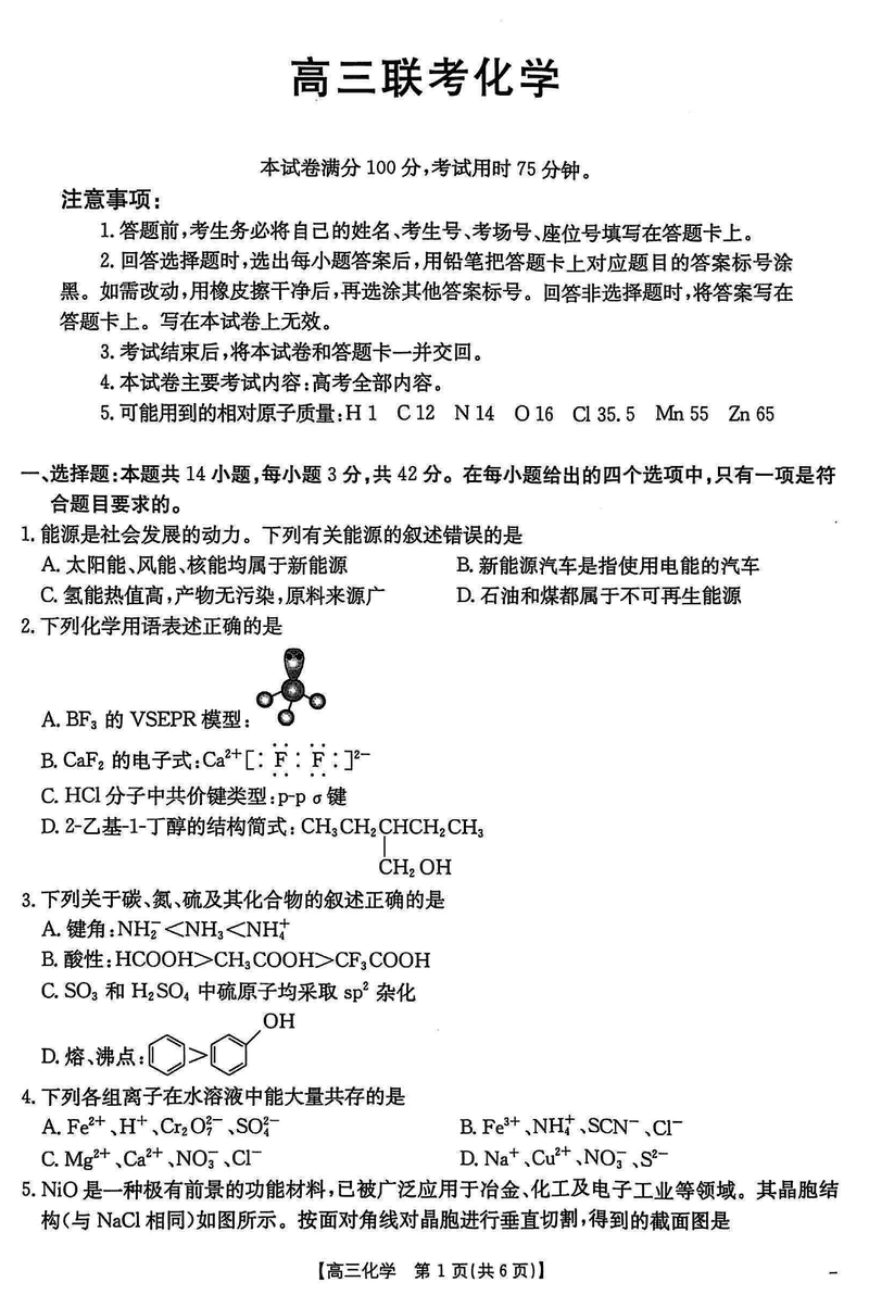 贵州安顺2025届高三下学期3月二模联考化学考试已于近日开考,为方便考生考后及时查看考试情况,查漏补缺、弥补不足,本文整理了试题答案解析相关信息!