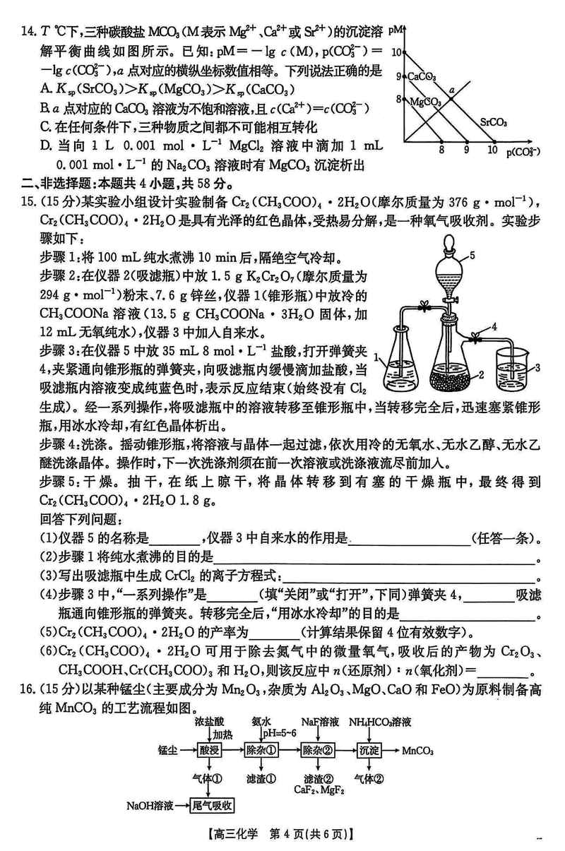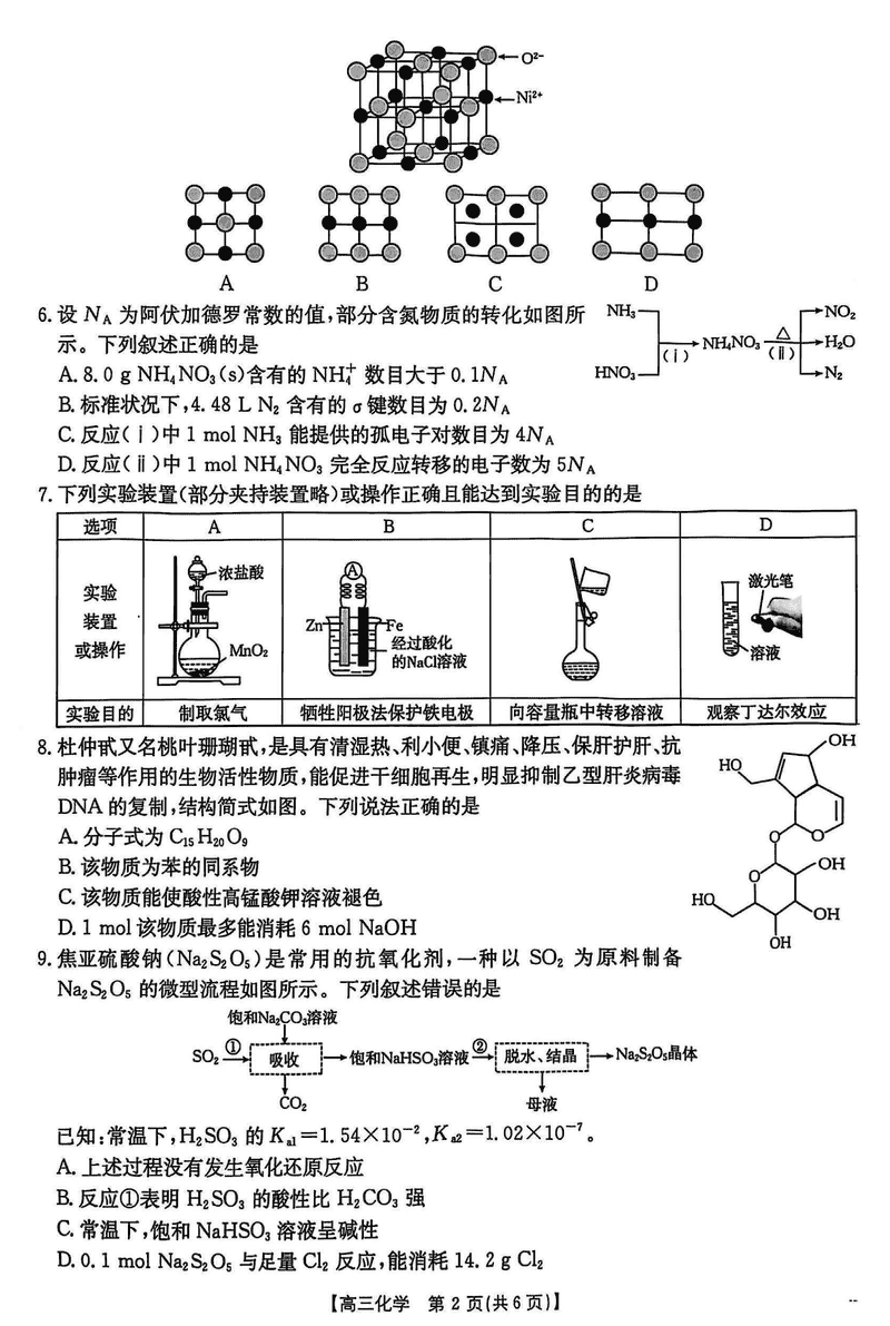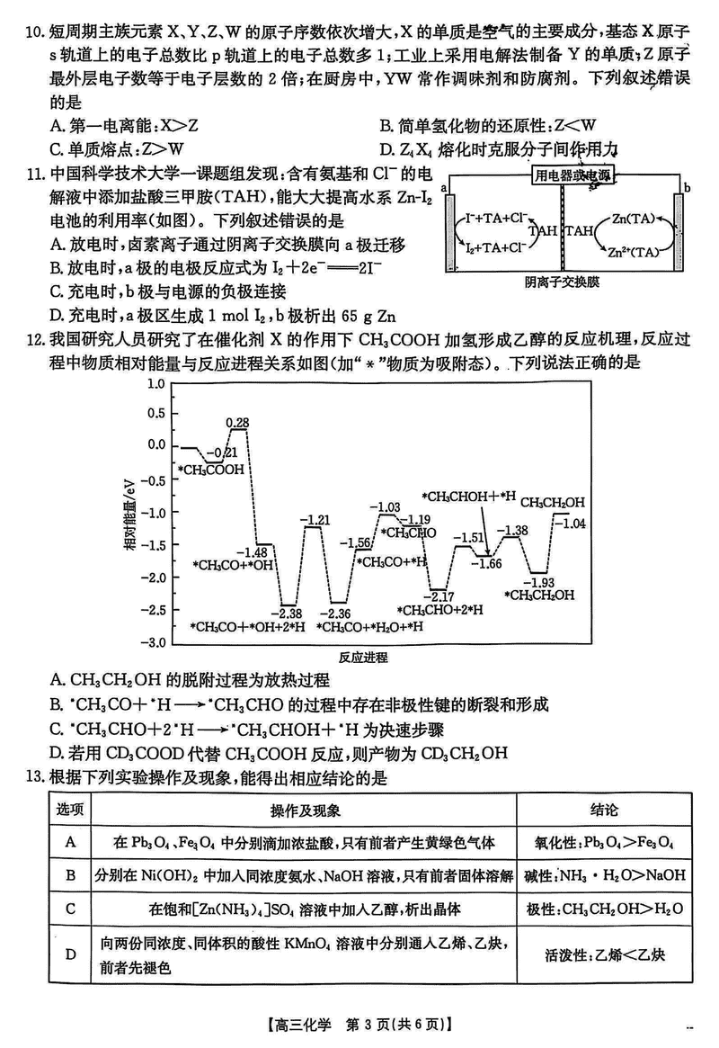 贵州安顺2025届高三下学期3月二模联考化学试题及答案