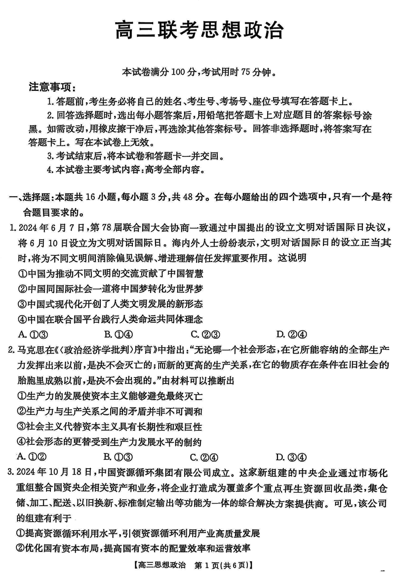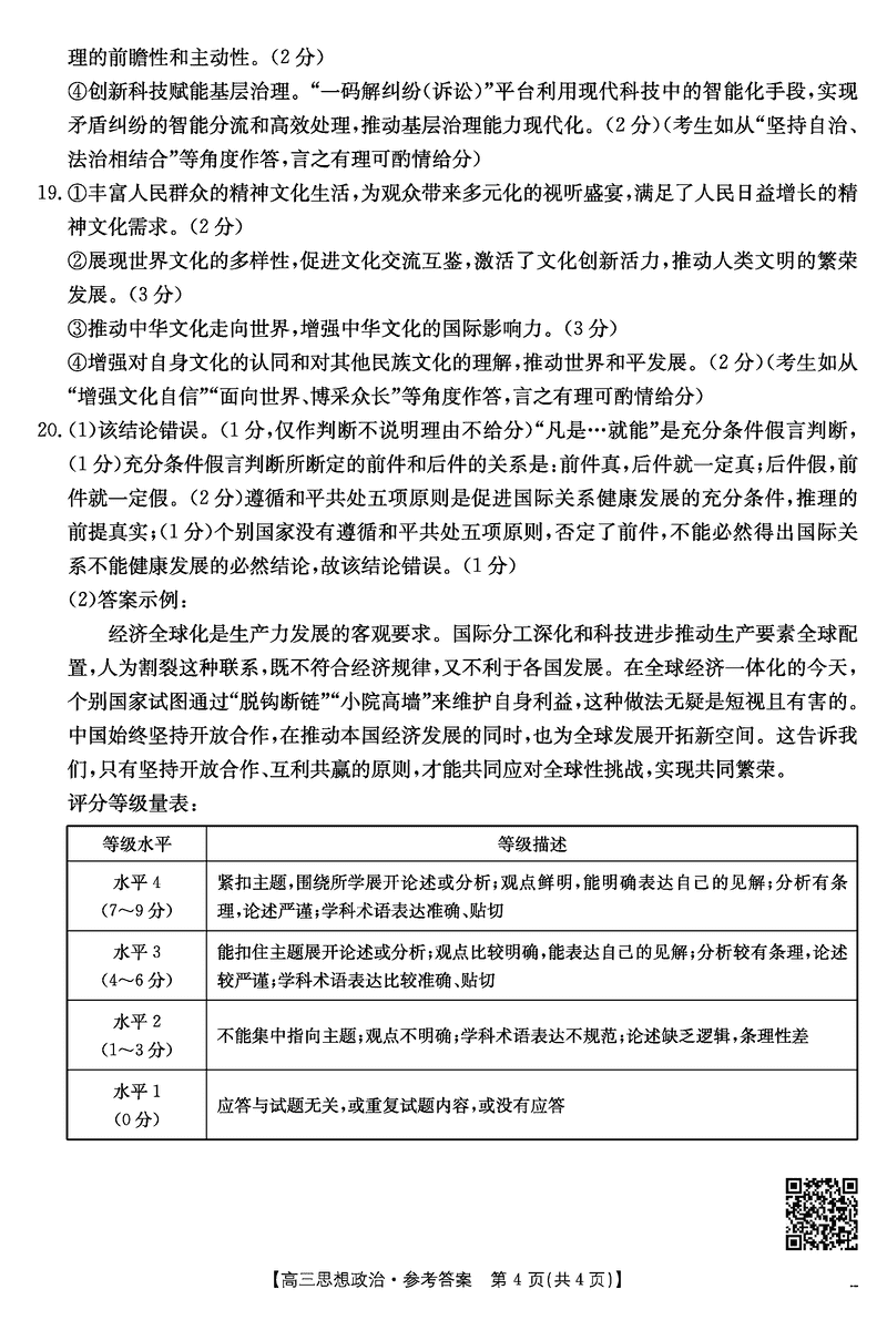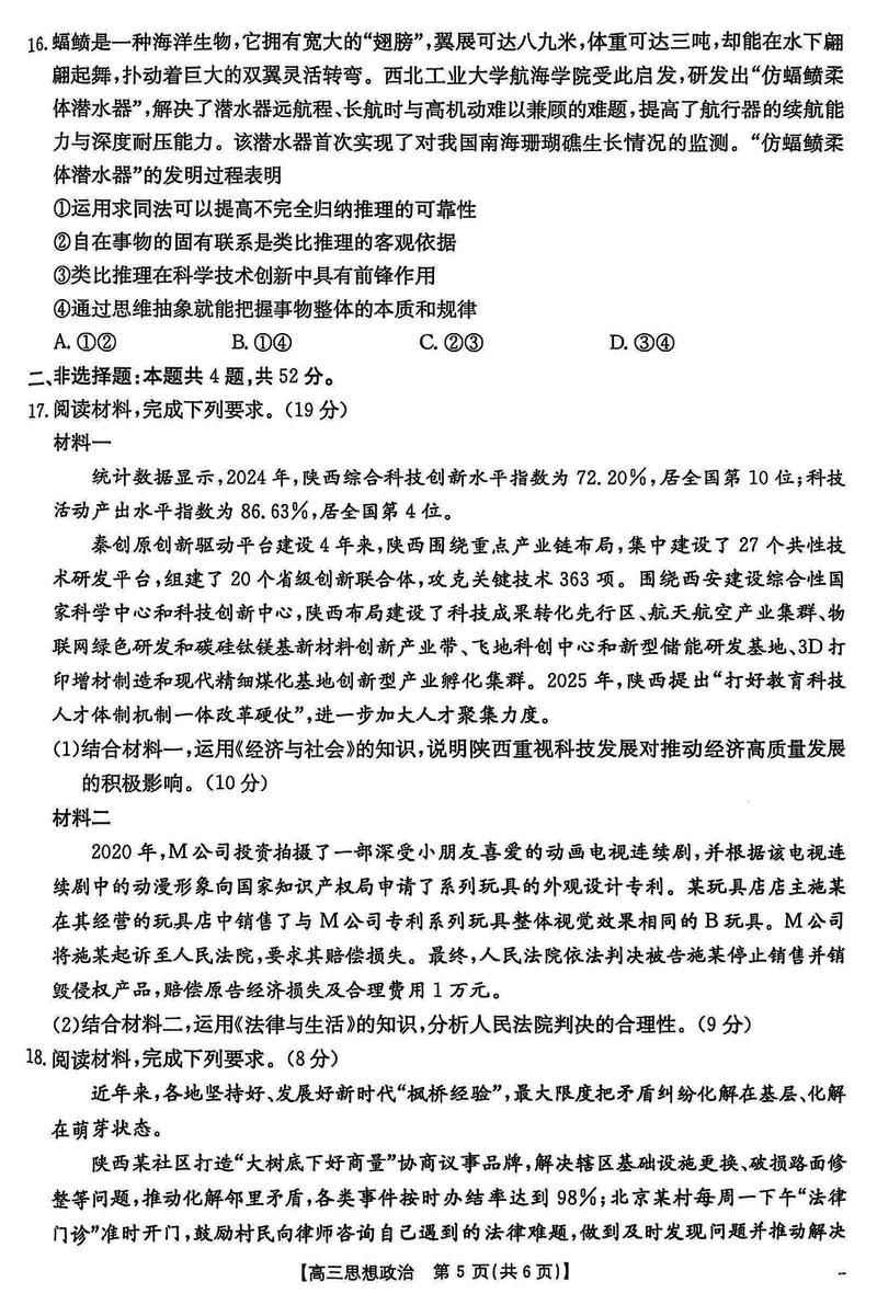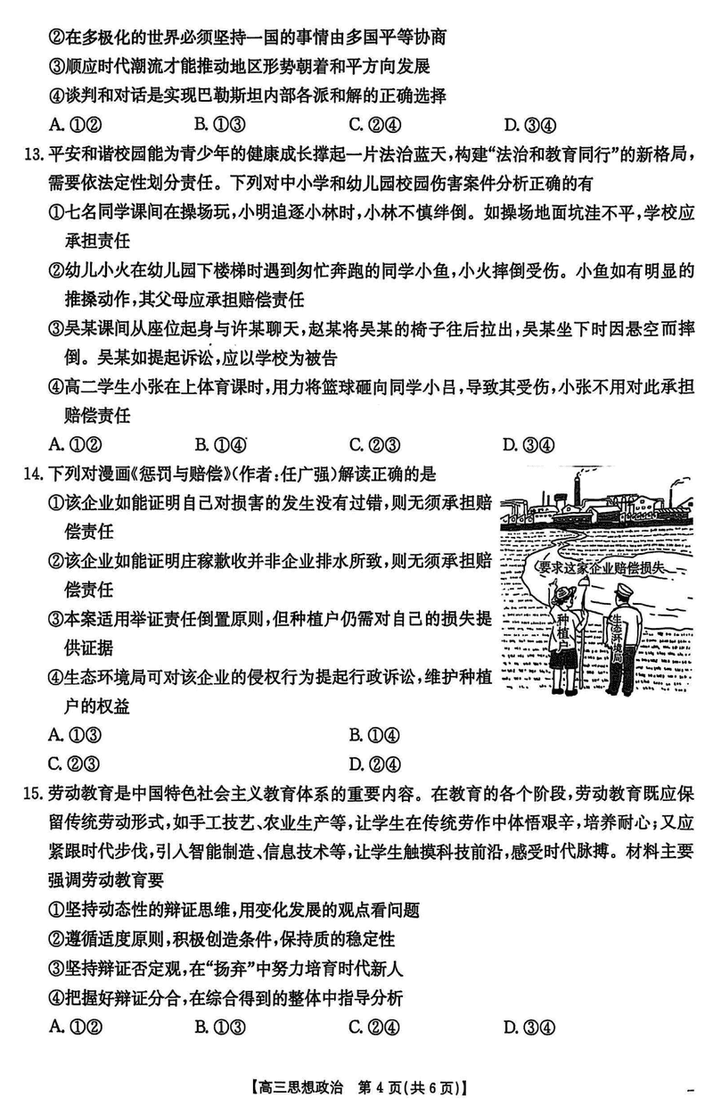 贵州安顺2025届高三下学期3月二模联考政治试题及答案